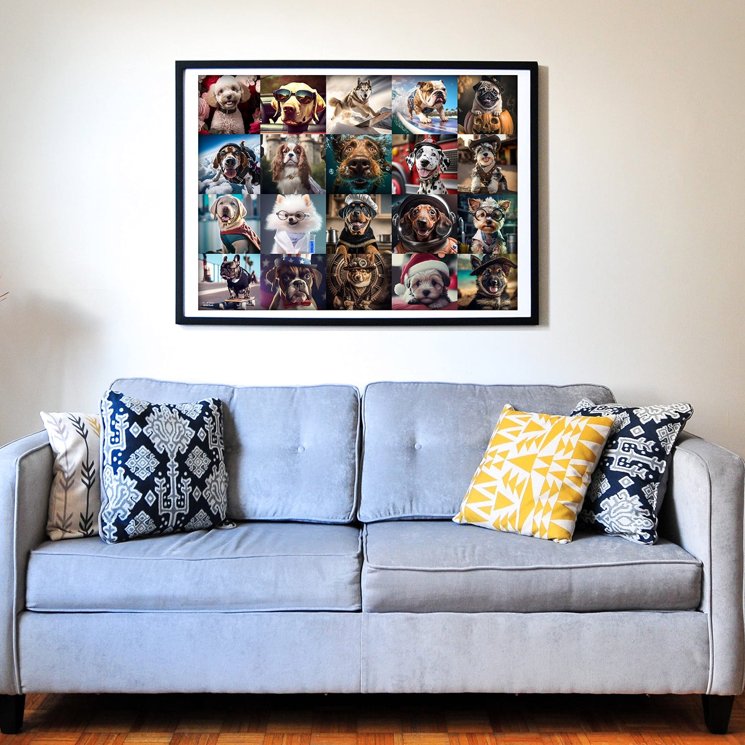 - 【Cute Dogs】 - This puzzle is perfect for dog lovers and puzzle enthusiasts alike, with its vibrant colors, high-quality pieces, and 20 adorable dog including Bulldog, Boxer, Corgi, German Shepherd, Poodle, Labrador, Siberian Husky, Pug, Beagle, Spaniel, Irish Setter, Dalmatian, Schnauzer, Golden Retrievers, Pomeraanians, Rottweiler, Dachshund, Yorkshire Terrier. These furry friends are in adorable outfits including superhero, fireman, cowboy, santa, pirates, halloween and princess.