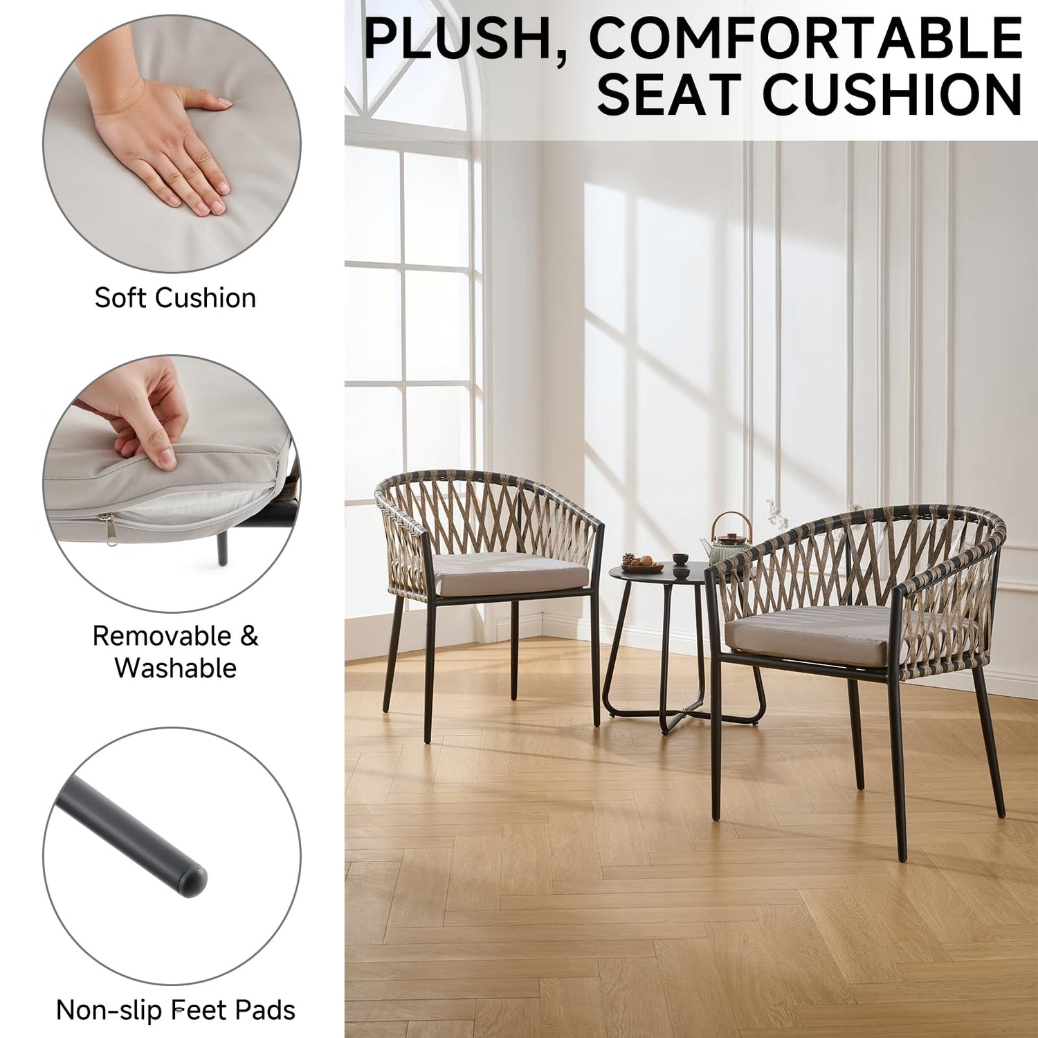 - Suitable for Various Occasions: These bistro furniture sets are meticulously crafted to effortlessly enhance the ambiance of any indoor or outdoor space. Their smooth rattan texture and elegant appearance add visual appeal to your living room, patio, and garden.