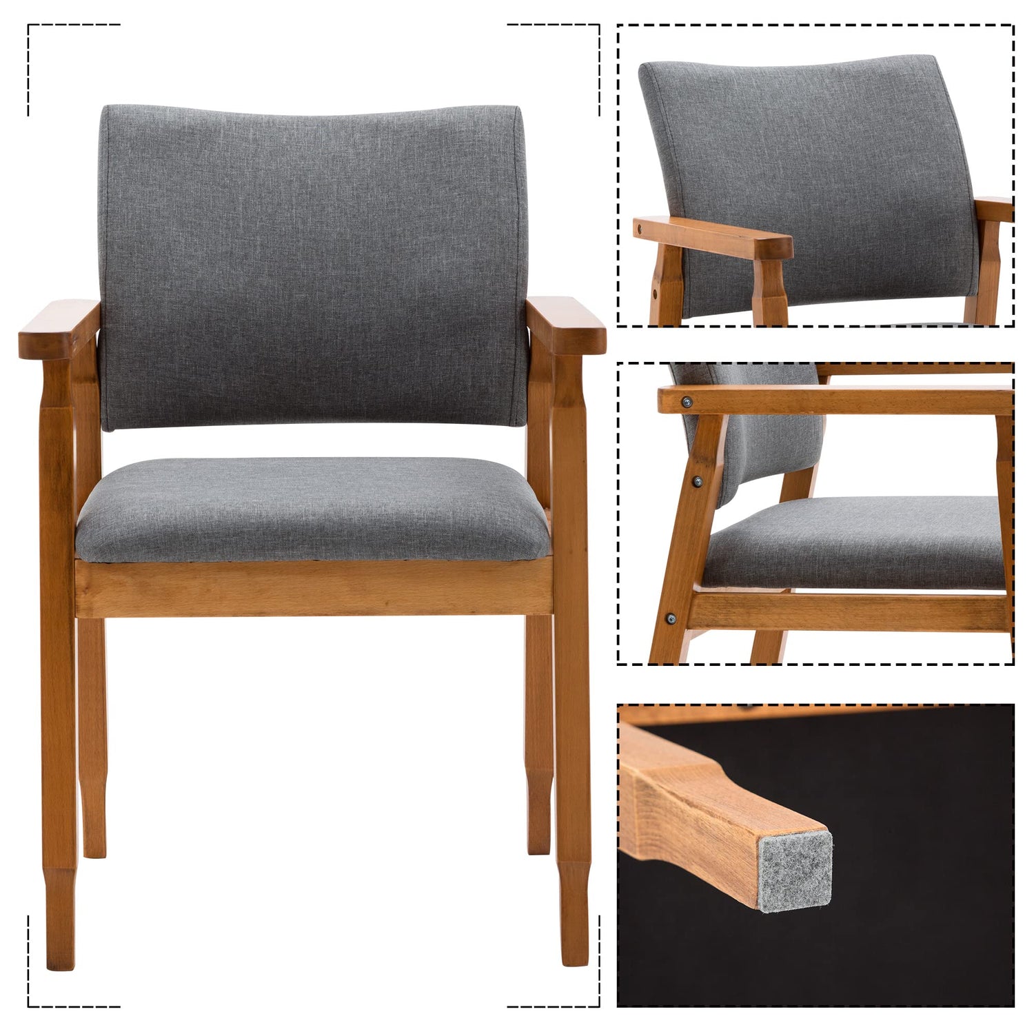 thksbought Set of 4 Mid Century Modern Walnut Dining Chairs Wood Arm Grey Fabric Kitchen Cafe Living Room Decor Furniture