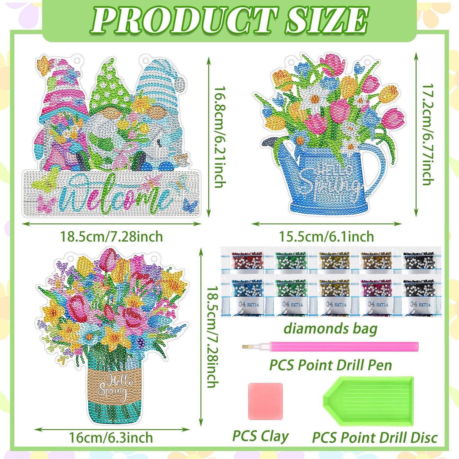 - Unleash Your Creativity: experience the joy of creating spring themed diamond art with our diamond art ornaments kits; Our DIY crystal paint craft sets come in 3 delicate designs, featuring charming gnomes, vibrant flowers, and more; All this, complemented by the inclusion of necessary diamond painting tools, making the process enjoyable and easy
