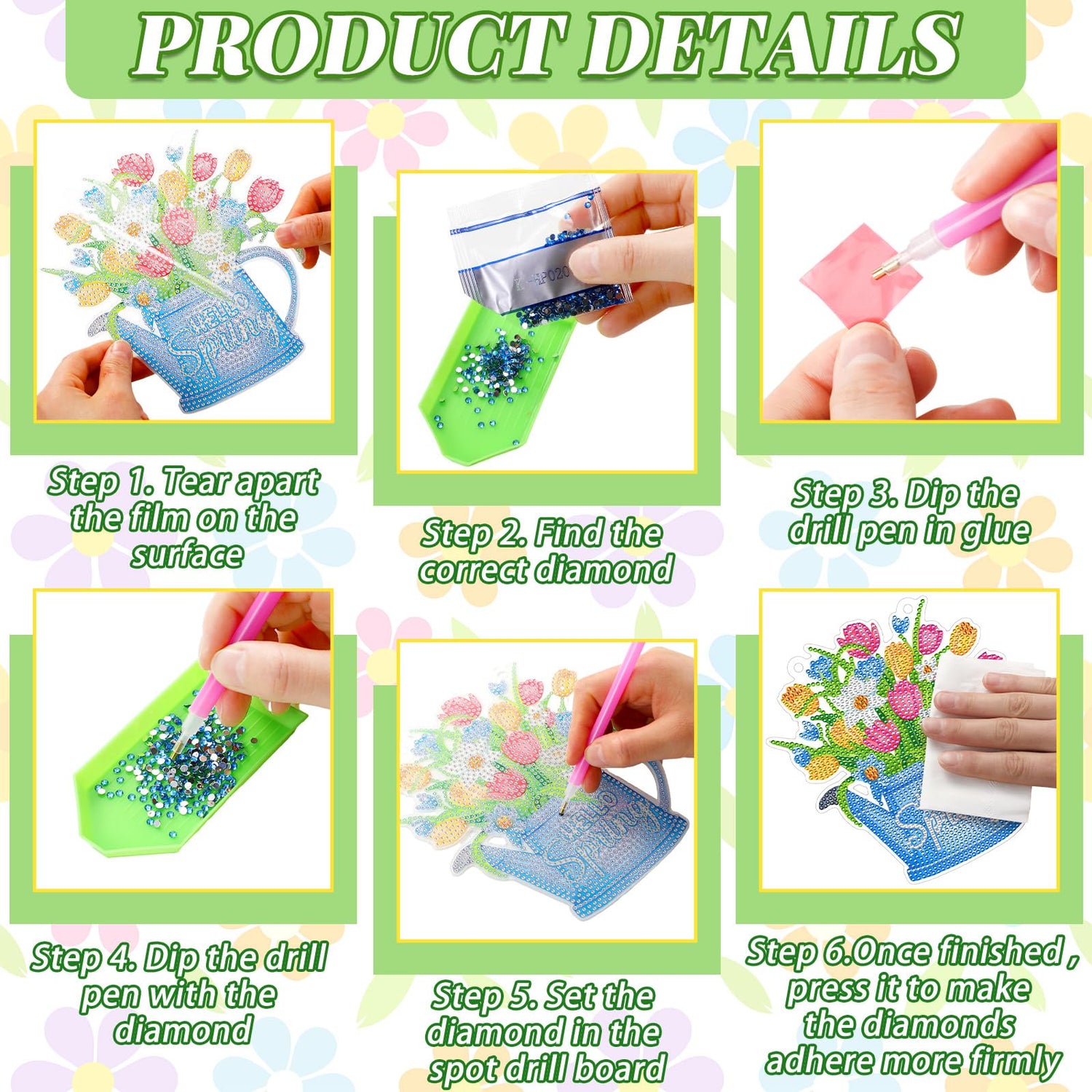 - Reliable Materials and Suitable Size: crafted from quality acrylic material, DIY spring diamond painting kit has durability to last for seasons; Moreover, each sign's size is designed ideally for various places like door, window, and wall, ensuring they blend seamlessly into your living spaces; Designed with chain, easy to hang