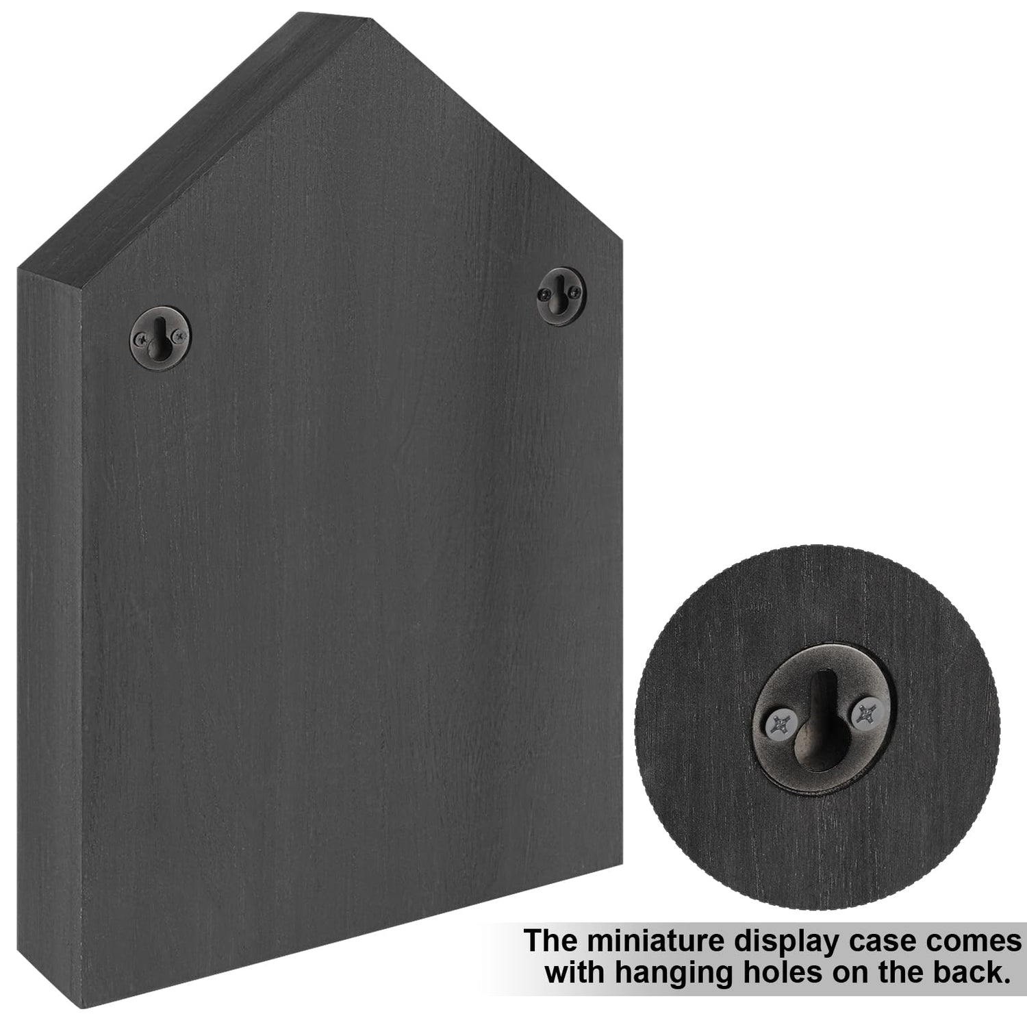 Threehoney House Shaped Wooden Shadow Cubby Box 10 W x 2 1/4 D x 15 H Hanging Display Shelf Organizer Wall Mounted Curio Cabinet Wooden Display Case Miniature Display Shelf for Figures (Black)