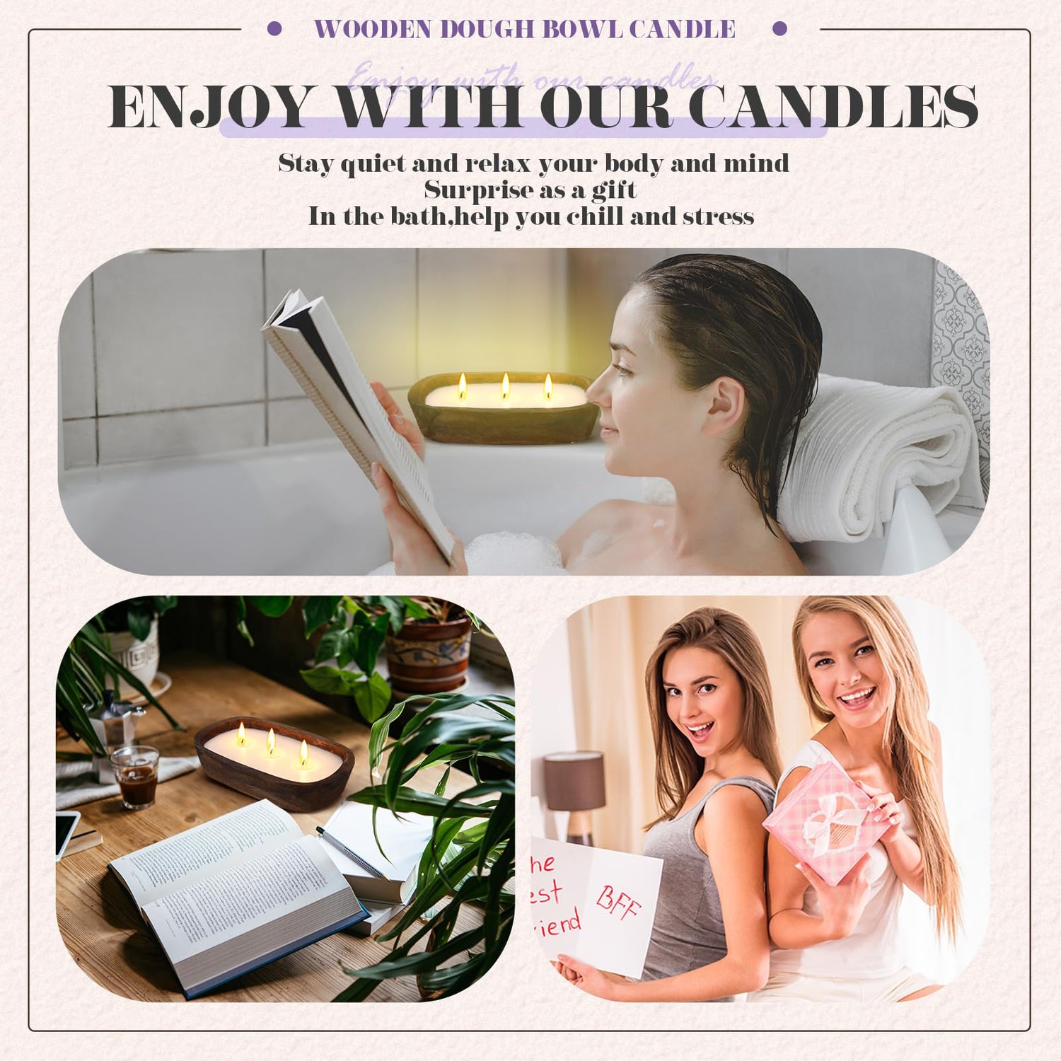 - Crafted scented candles: our candle set includes two beautifully crafted wooden dough bowl candles, each designed with wick lights; Immerse yourself in the charm of these scented candles, each releasing a captivating lavender scent that transforms your living space into a relaxing retreat. Note: Candle burning is affected by the actual temperature, if there is a partial depression of the candle, please keep the candle burning continuously, the surrounding candle will melt