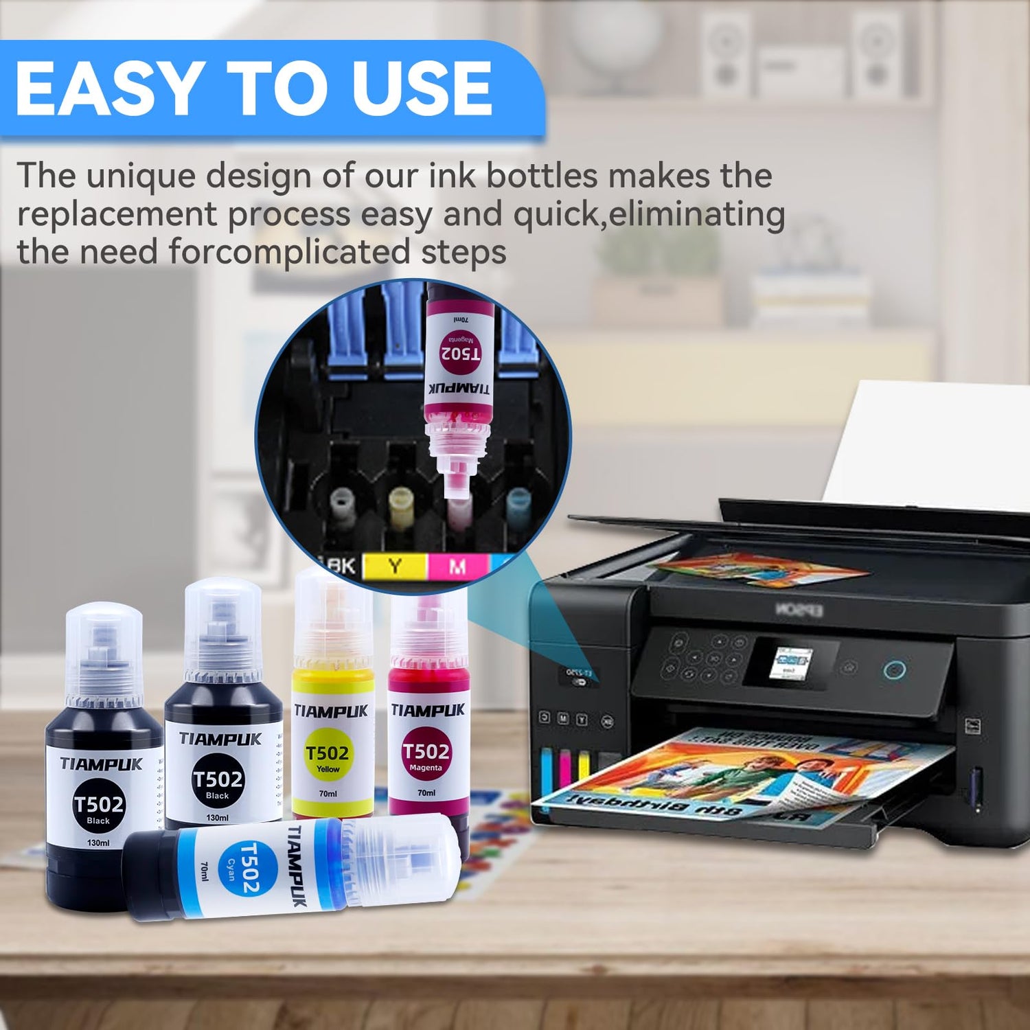 - Affordable Excellence: Tiampuk Compatible With T502 Ink refill Bottle provides a high-caliber yet economical printing solution, delivering outstanding results without compromising on affordability.