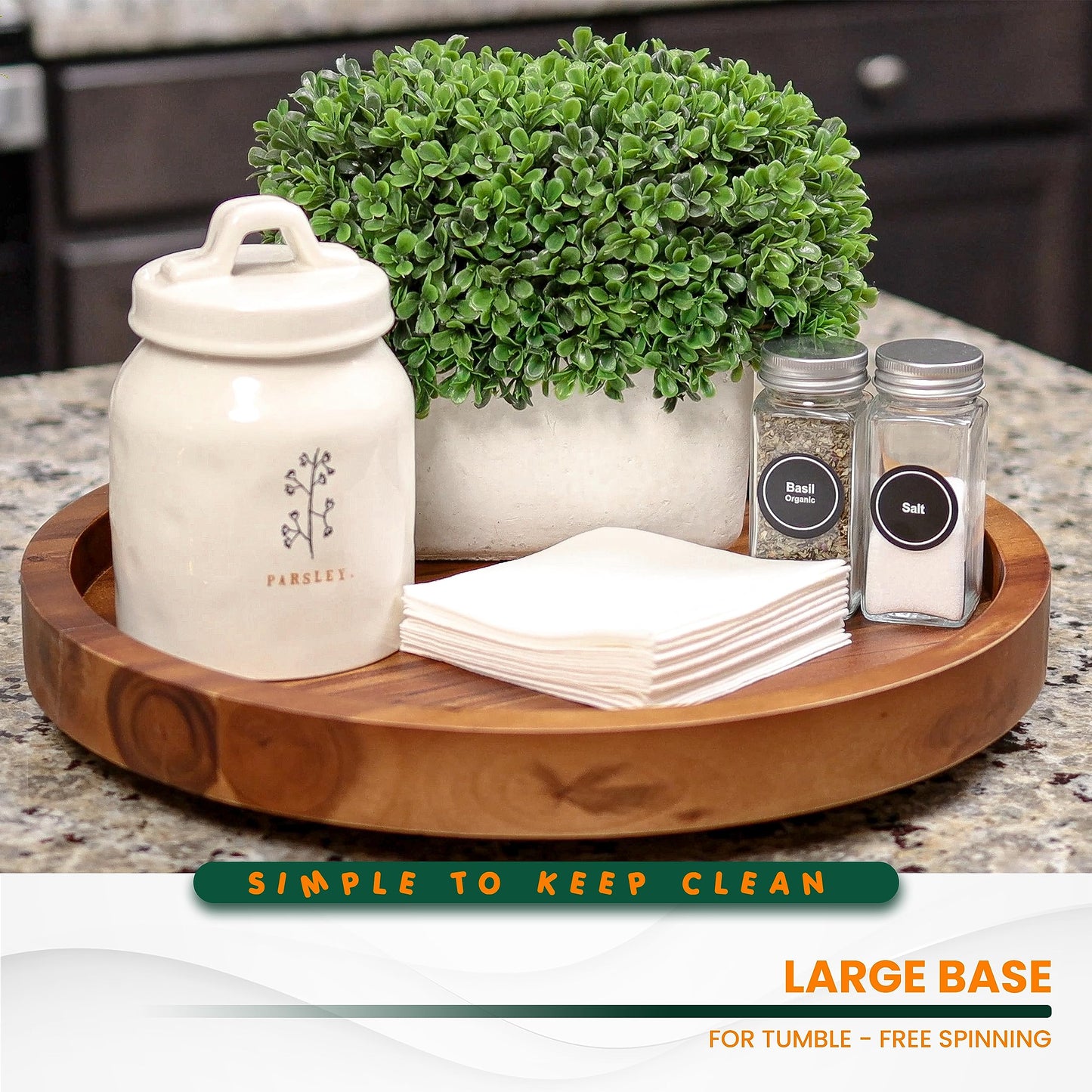- ✅ Natural Material: The Lazy Susan is crafted from durable Acacia wood, a preferred choice for household items due to its exceptional durability.