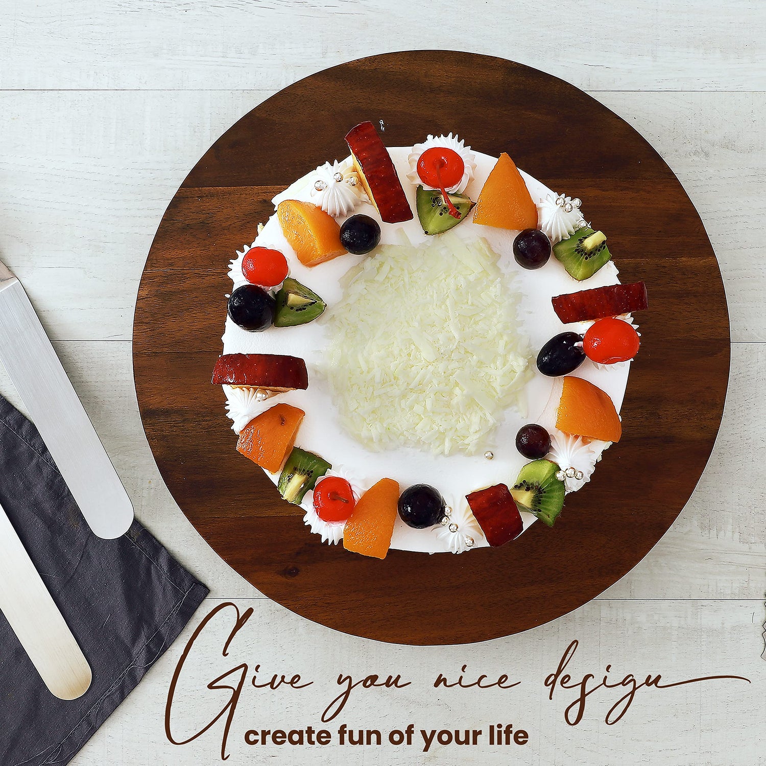 TIDITA 13" Acacia Cake Stand Rotating – Rustic Wood Turntable Pedestal Stands – Wooden Spinning Tables for Food Serving - Round Cake Decorating for Cupcake Dessert Display in Party, Wedding, Birthday