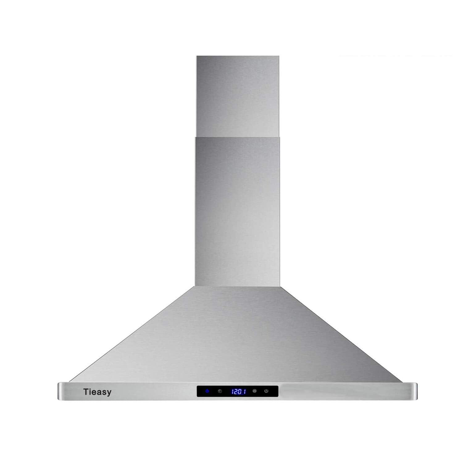 Tieasy Wall Mount Range Hood 30 inch Kitchen Hood 700 CFM with Ducted/Ductless Convertible Duct, Touch Control, Permanent Filters, Stainless Steel, 3 Speed Exhaust Fan, LED Light