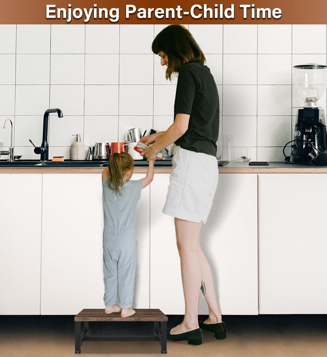 - Rounded Corners & Non-Slip Feet : The small step stool features a rounded corner design, prioritizing the safety of your family and pets. Equipped with non-slip adjustable rubber feet, it ensures stability even on uneven ground. The wide platform of the wood step stool accommodates individuals of all ages, making it convenient and safe to use for everyone.