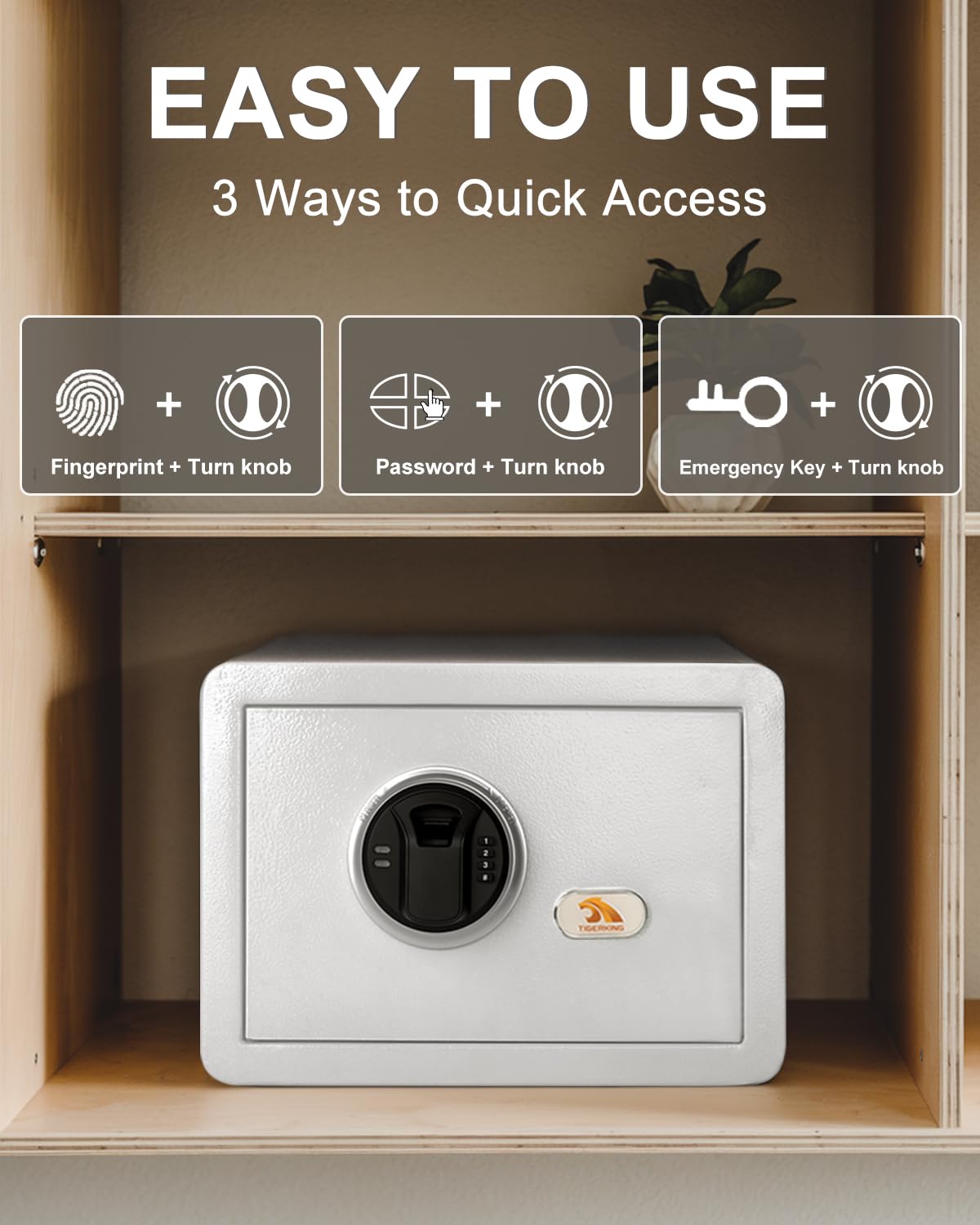 TIGERKING Biometric Fingerprint Home Safe, 1.2 Cubic Feet Digital Security Safe Lock Box, Quick-Access Small Safes for Cash, Jewelry, Handgun, Document, White