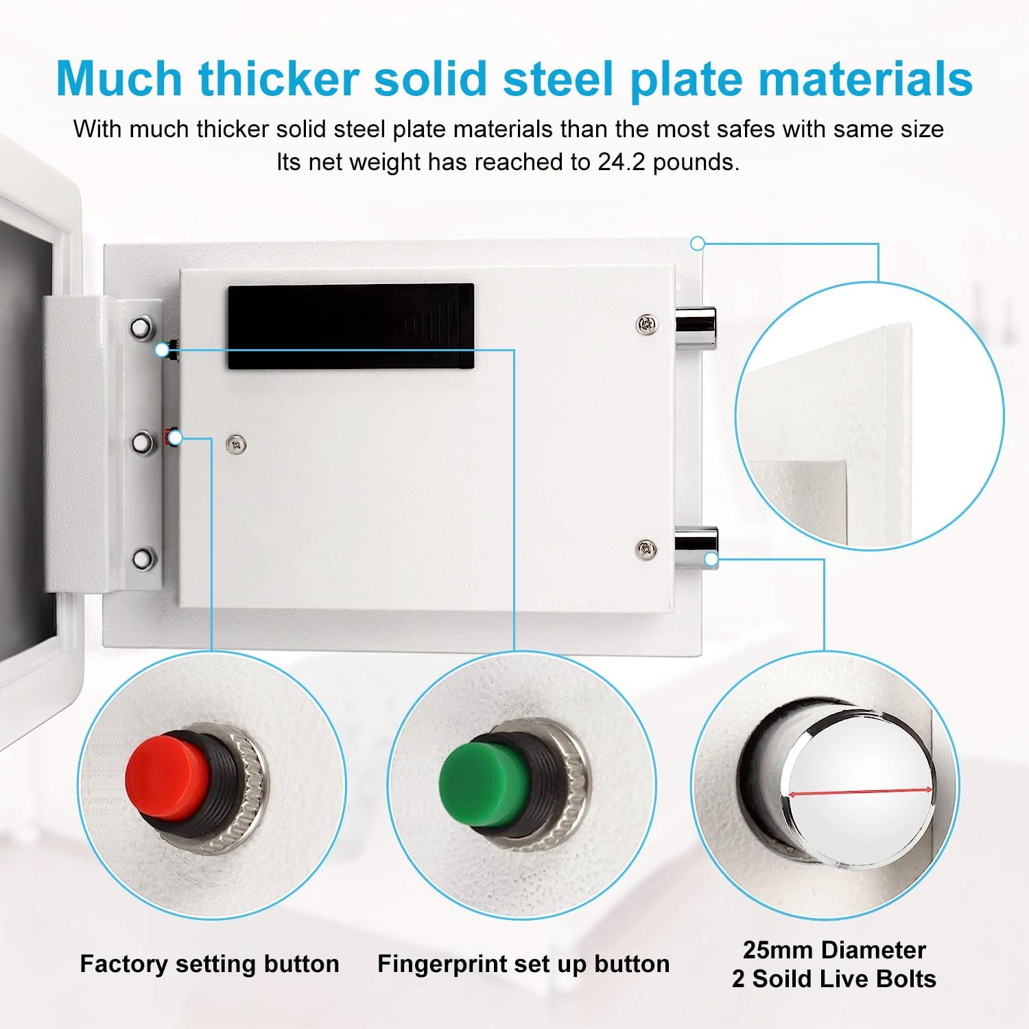 - 【Sturdy Safe】: TIGERKING security safe is made of thickened solid steel material has strong reliability and long-lasting strength; In addition to the electronic lock, the security safe features two live-door bolts, pry-resistant steel door, and pry-resistant concealed hinges; Offering reliable protection for your valuables, even while traveling.