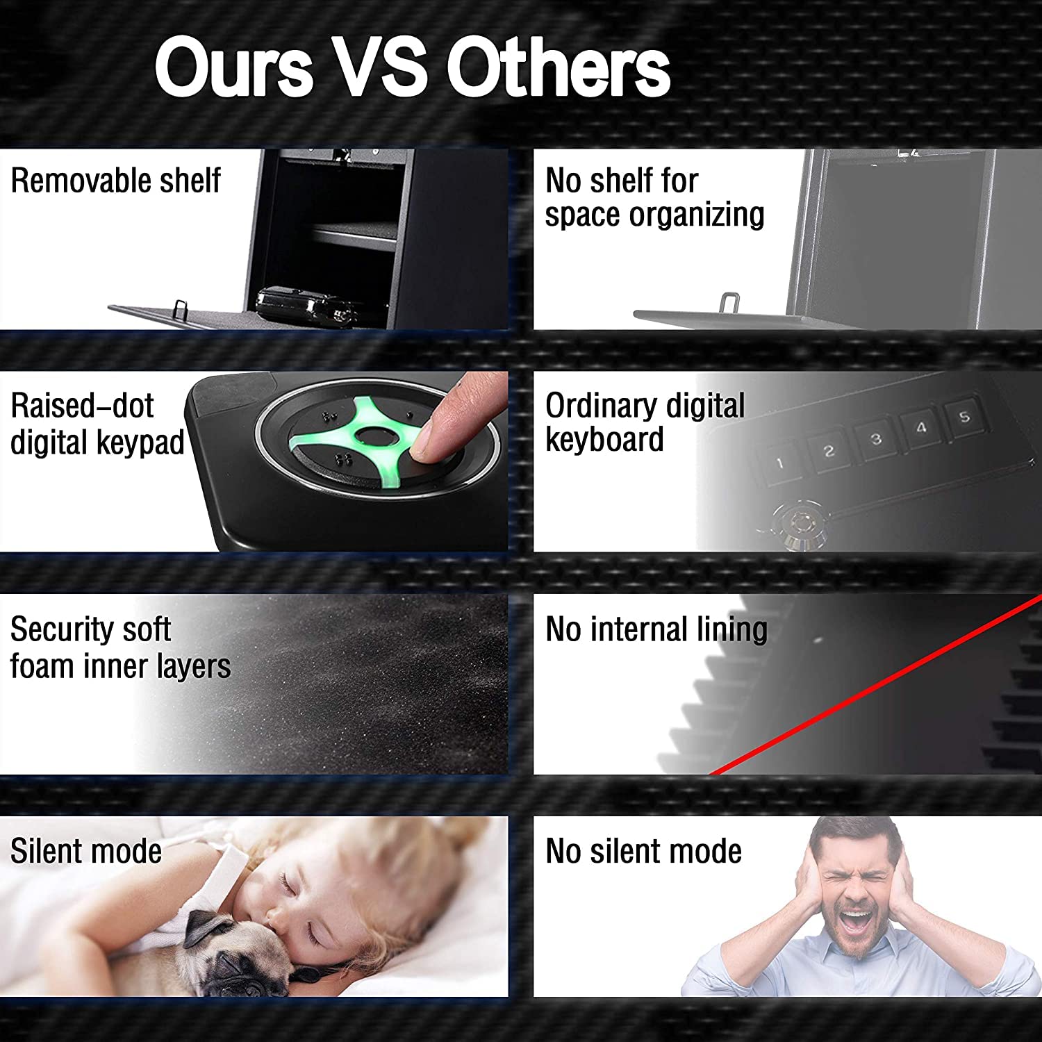 - 【Applicable Scenarios】: Our pistol safes are perfect for home, office, car, or any other location that is convenient for you. Provides secure storage for handguns, ammunition, passports, cash, watches, jewelry or other valuables. Especially suitable for storing firearms away from children