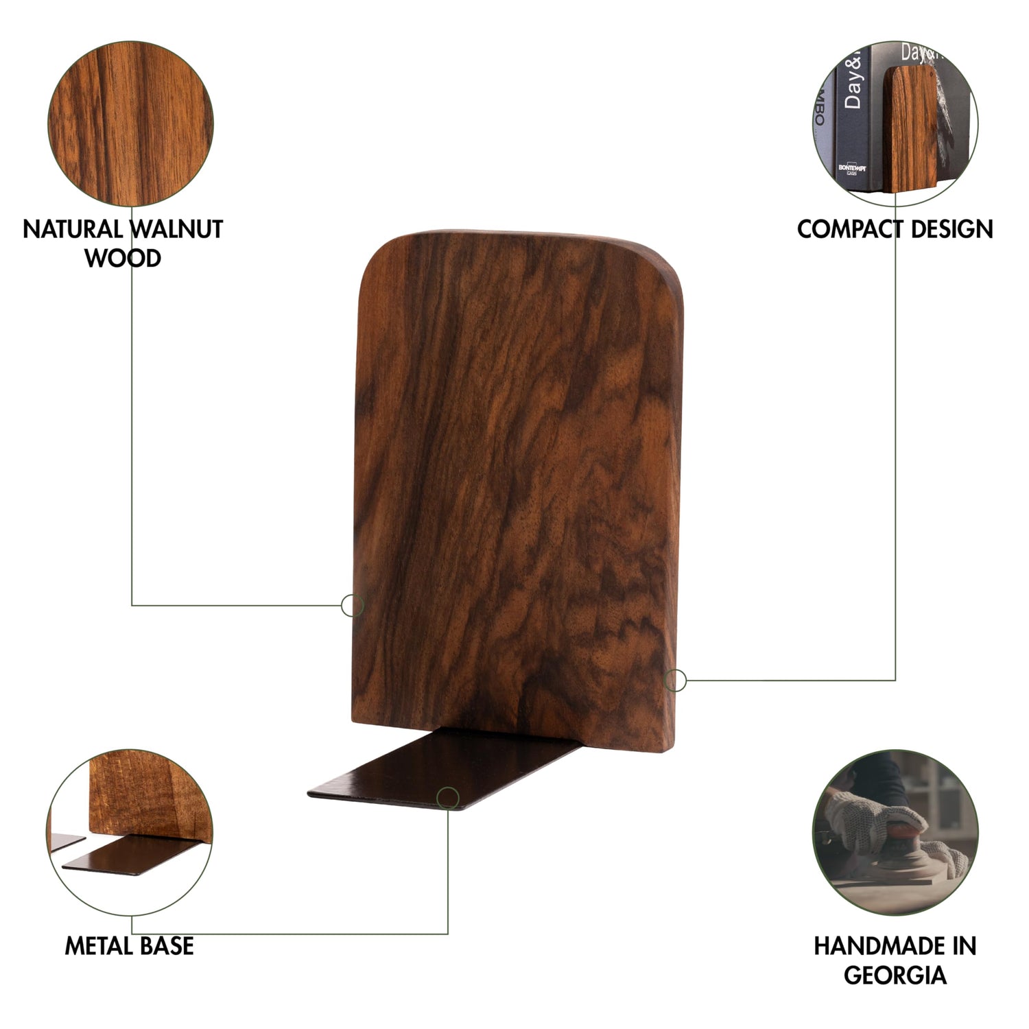 - ๐ HANDCRAFTED IN GEORGIA FROM PREMIUM WALNUT WOOD - Each book end is a unique piece, crafted by skilled artisans and reinforced with a metal base for enhanced durability and stability.