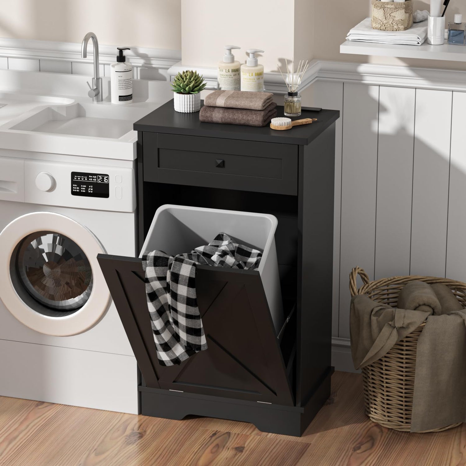 - Versatile Storage: Our tilt out trash cabinet is the perfect addition to any kitchen, home, apartment, dormitory, or laundry room. It provides ample storage space for kitchen waste, supplies, pet food, and more. Additionally, it can be used as a laundry cabinet, with the top surface ideal for displaying decorations and daily essentials.