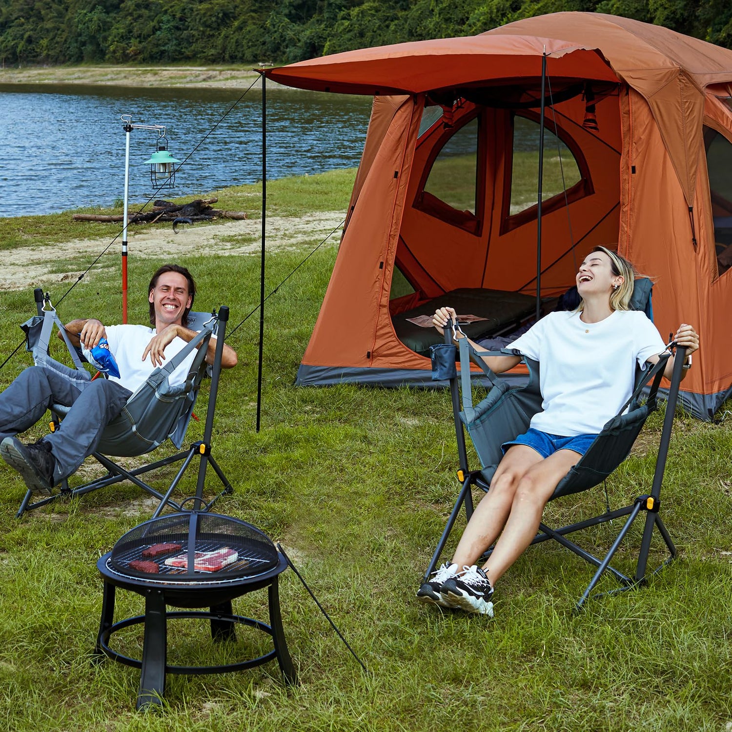 - Designed for Comfort: Camping swinging chair with padded fabric and pillow offers you a de-stressing, relaxing experience in outdoors. Adjustable backrest helps you to find the most comfortable position to sit or lie down.