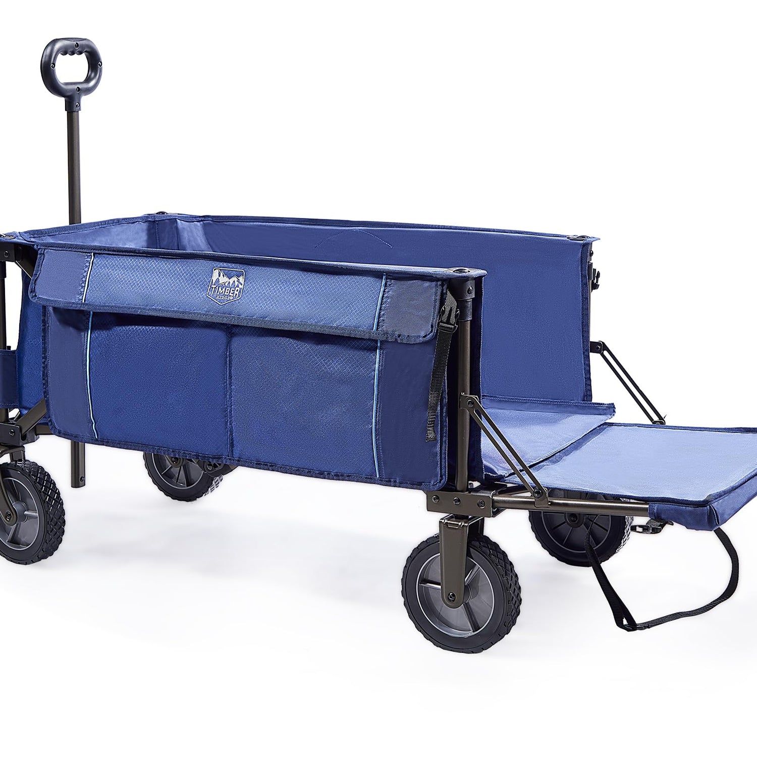 TIMBER RIDGE Tailgate Collapsible Folding Wagon Cart, Heavy Duty Utility Push Pull Beach Wagon Foldable, Outdoor Grocery Cart with Side Pockets for Camping, Garden, Shopping, Holds 225 lbs, Blue