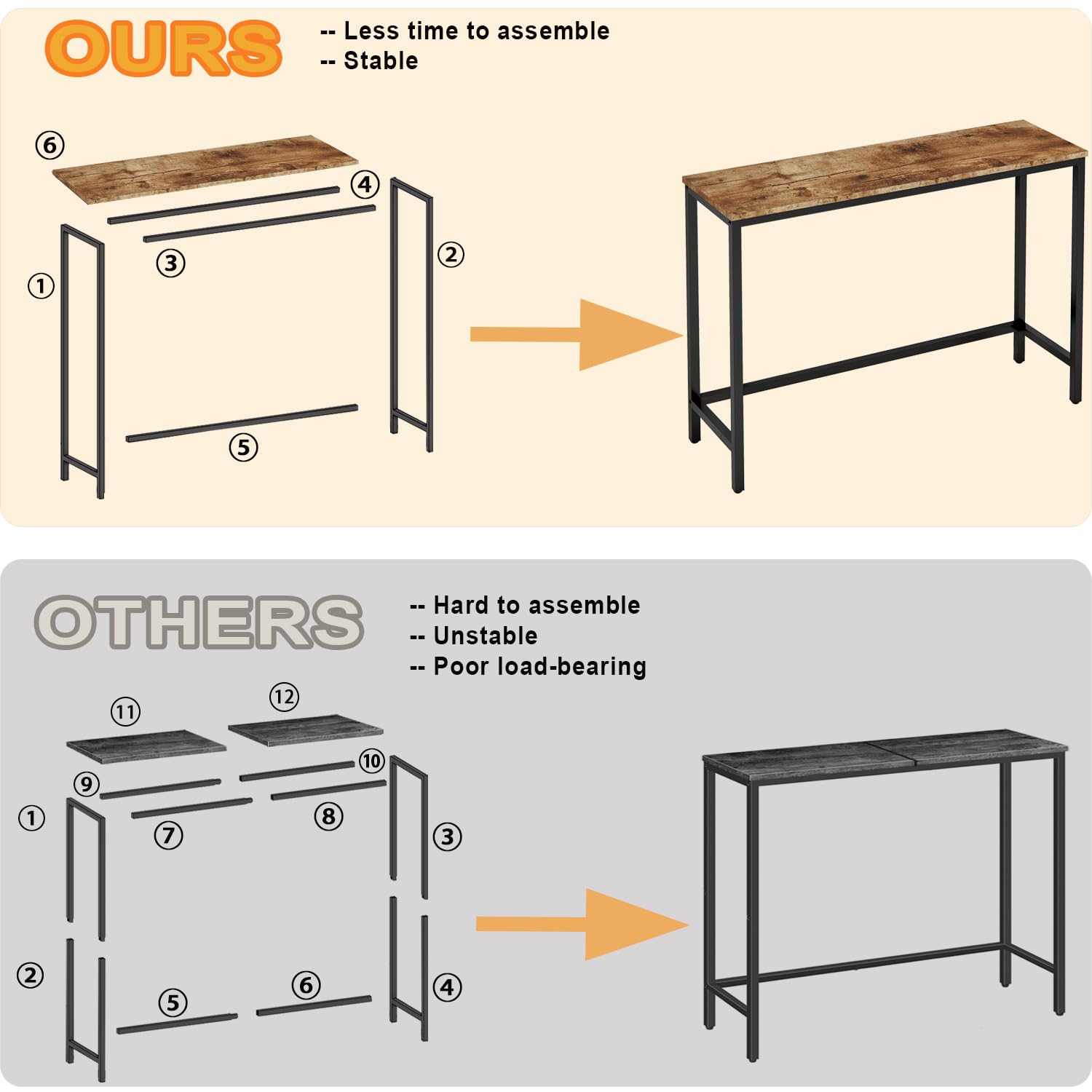 - Worried about assembly difficulties? With simple and clear instructions and part numbers, even one person can perfectly assemble this sturdy sofa table, allowing you to overcome the fear of assembly