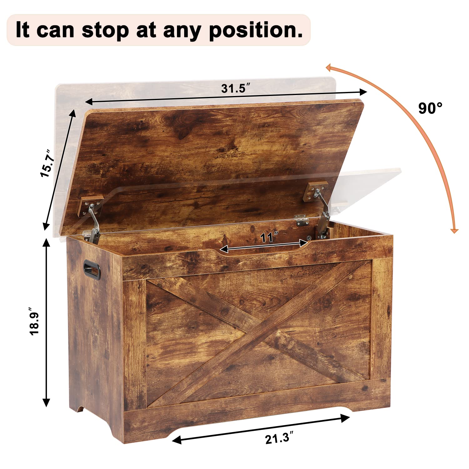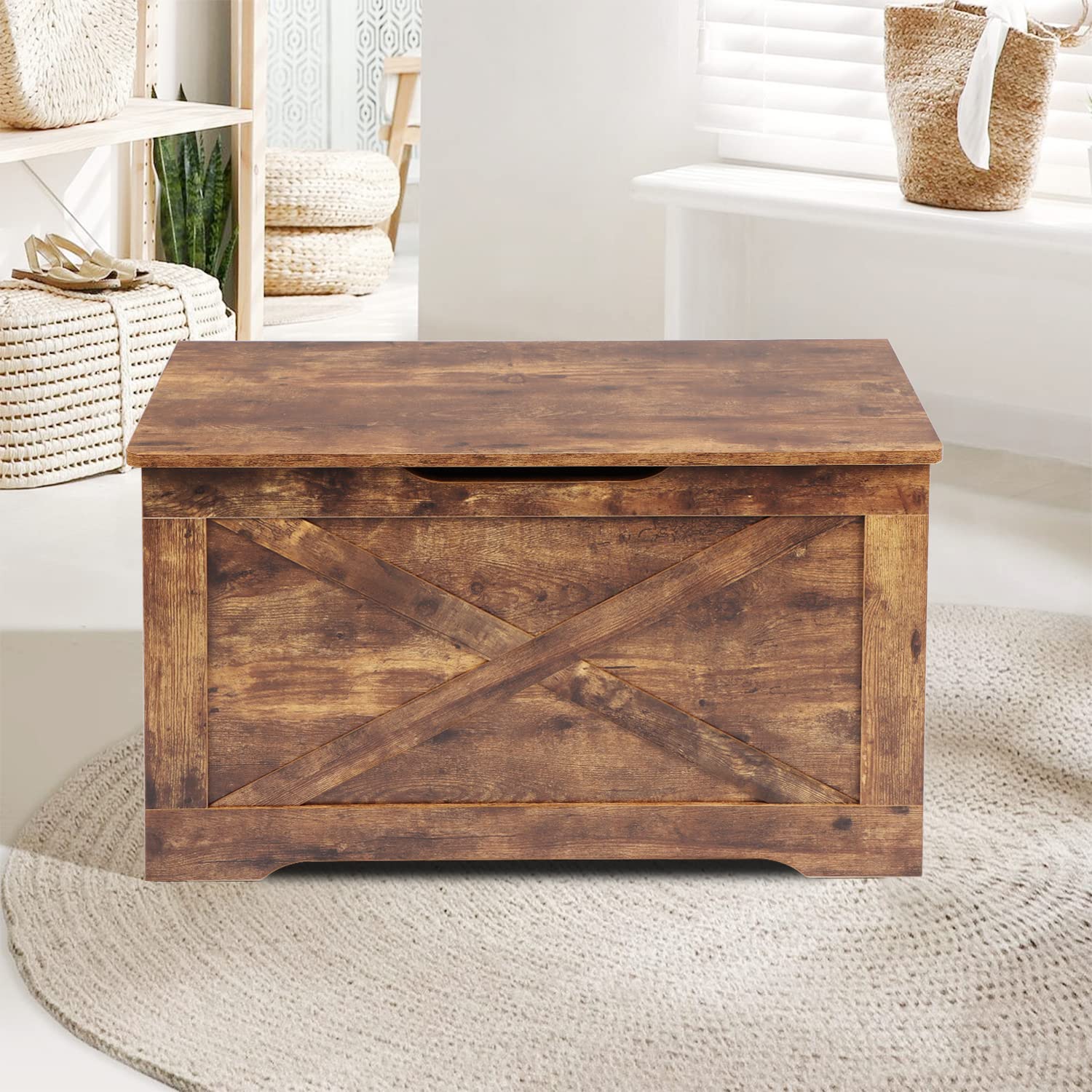 Timberer Storage Chest, Wooden Storage Bench, Entryway Shoes Bench with 2 Safety Hinges, Retro Storage Trunk for Living Room, Bedroom, 15.7 x 31.5 x 18.9 Inches, Rustic Brown