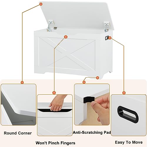 Timberer Storage Chest, Wooden Storage Bench, Entryway Shoes Bench with 2 Safety Hinges, Retro Storage Trunk for Living Room, Bedroom, 15.7 x 31.5 x 18.9 Inches, White