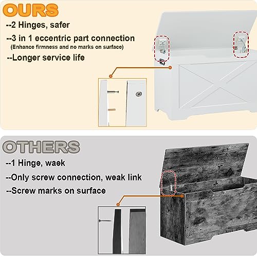 - High Load Capacity - The wooden storage chest is made of EPA-grade particleboard, the maximum static load weight is up to 220 lb. In addition, Gel Bumpers under the hinged cover not only dampen accidental impacts but also provide more surface protection and noise suppression.