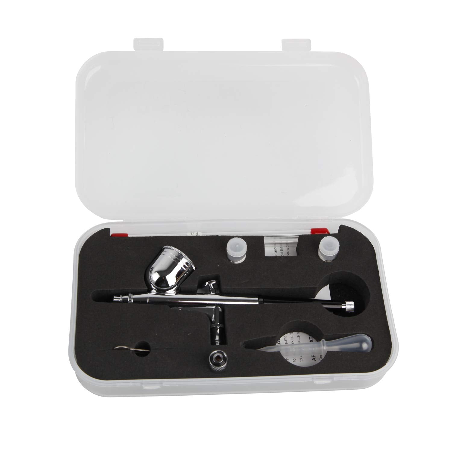 - Gravity feed and double action airbrush with 0.30mm nozzle/needle,6ft(1.80mt) air hose,mini filter, cleaning brush & 5*Paints