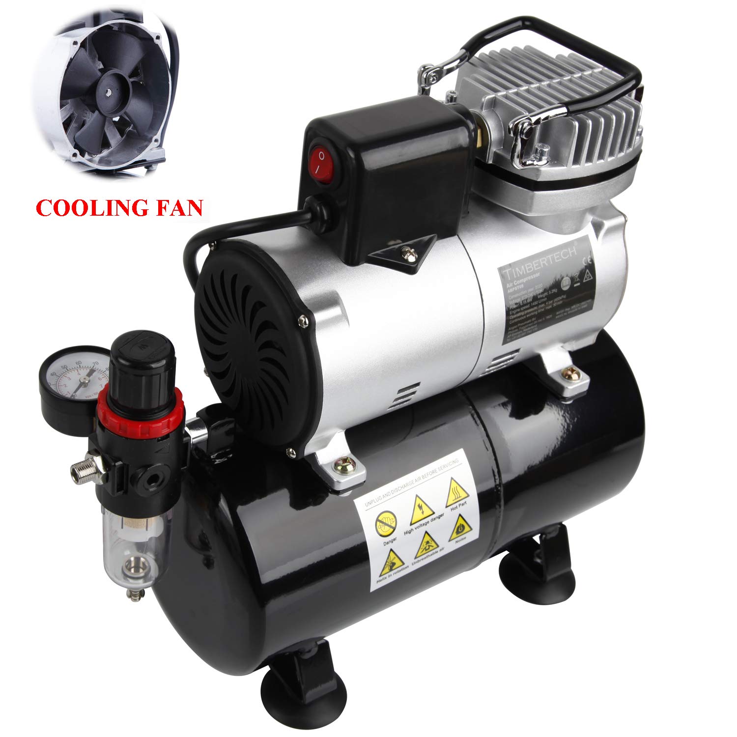 Timbertech ABPST08K Airbrush Compressor Complete Set with Upgraded Cooling Fan and Airbrush Accessories for Airbrushing Hobby, Body Tattoo, Model Painting, Automotive Graphic, Make-up(110-120V)