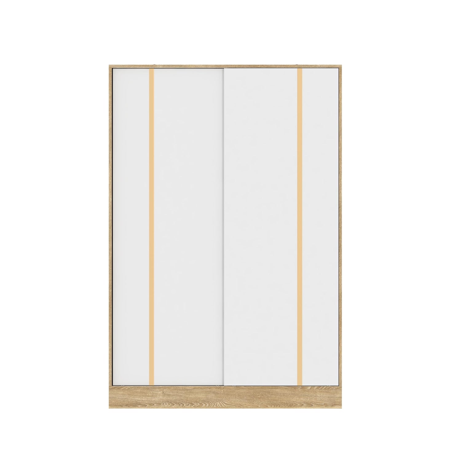 - Modern Wardrobe: This clothes amories has a simple and square-shaped appearance. Its main body features a light wood-colored outline paired with white cabinet doors. 2 golden metal strips on the cabinet doors add a touch of design. It can easily match a variety of home decor styles, bringing tidiness and elegance to the space