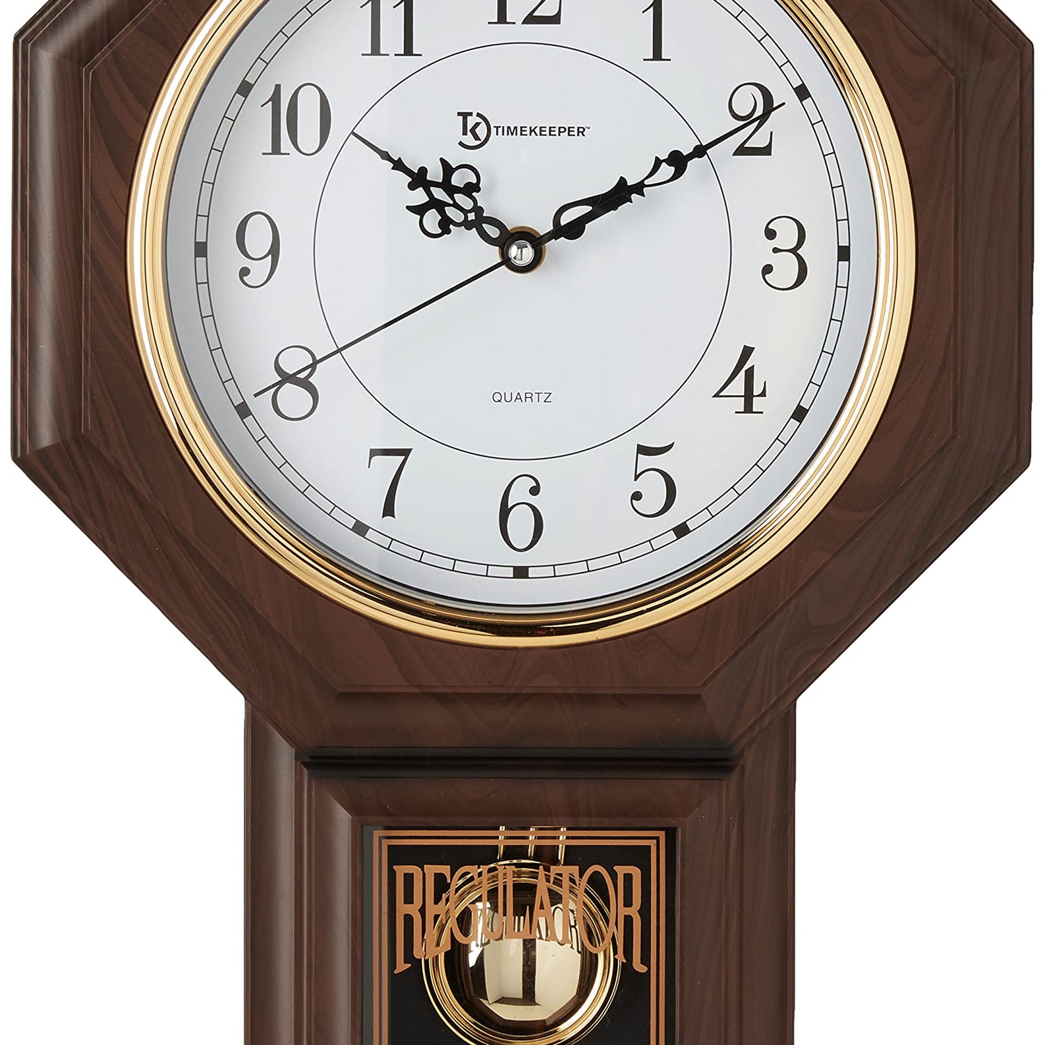Timekeeper Essex Westminster Chime Faux Wood Pendulum Wall Clock, 17.5" x 11.25", Walnut