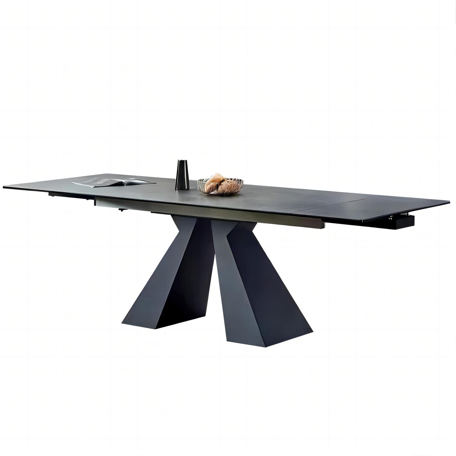 TimesGate Expandable Dining Table for 8-12 Seat, Flexible Stretch, Tabletop Made from Rock Plate and Tempered Glass, Solid Carbon Steel Base, 35.4" D x 94.5" W x 30" H, Dark Grey