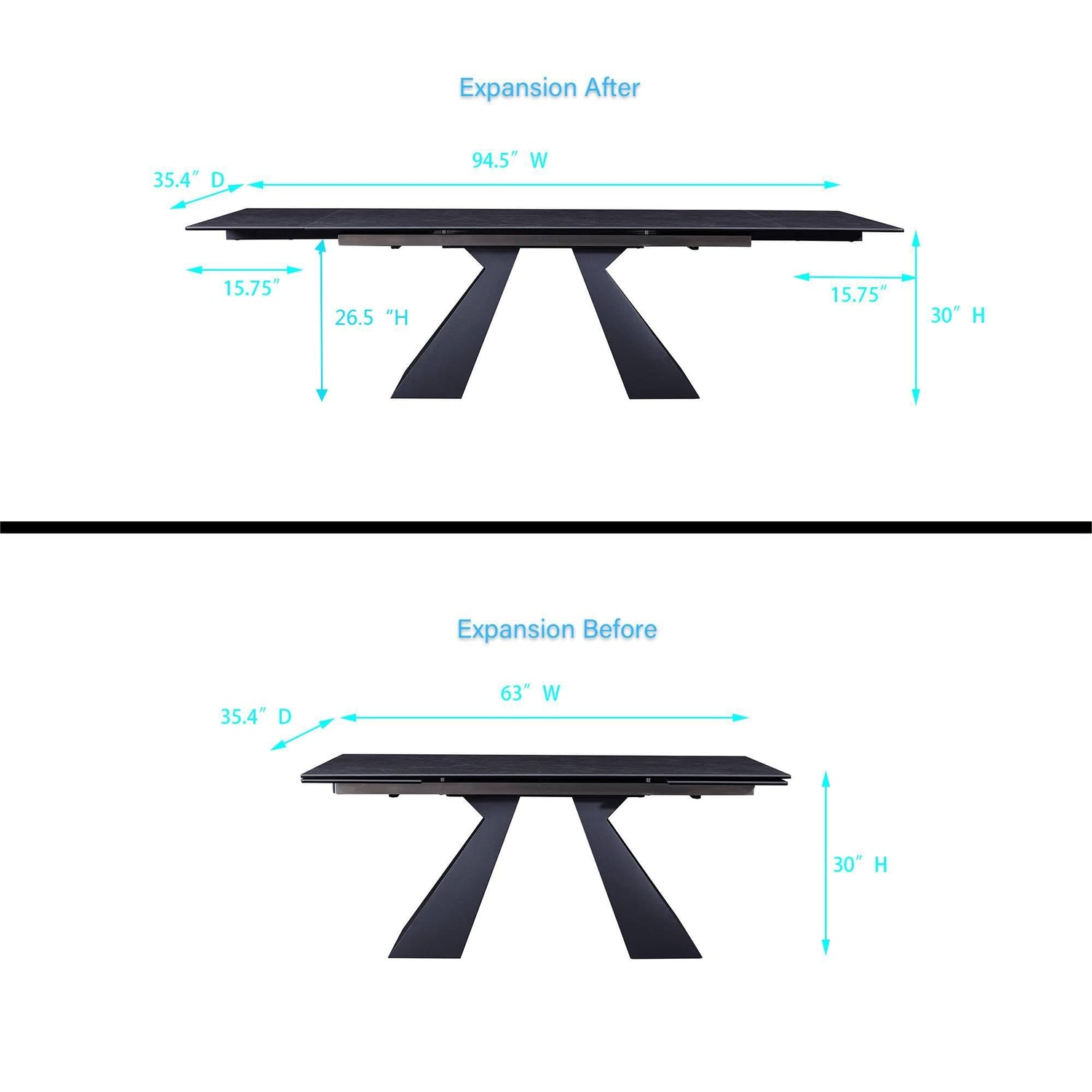 - ☞ Product size: 35.4"D x 63"(+31.5 ")W x 30"H Table material: tempered glass + sintered stone;Base material: carbon steel; Color: Dark gray ;Net weight: 260 pounds; Assembly: Requires simple assembly.