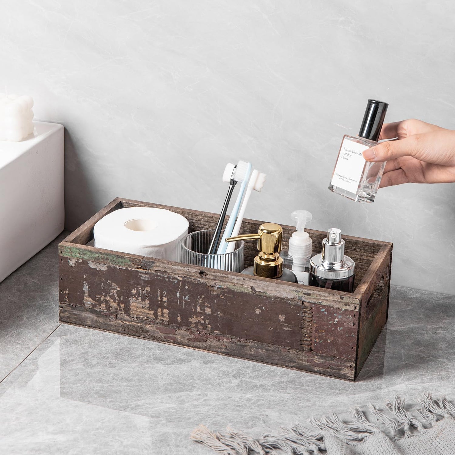 TIMRIS Farmhouse Distressed Wooden Storage Box, Rustic Bathroom Decor Box, Decorative Toilet Tank Basket Nice Butt, Solid Reclaimed Wood Organizer Box with Handles (Random)