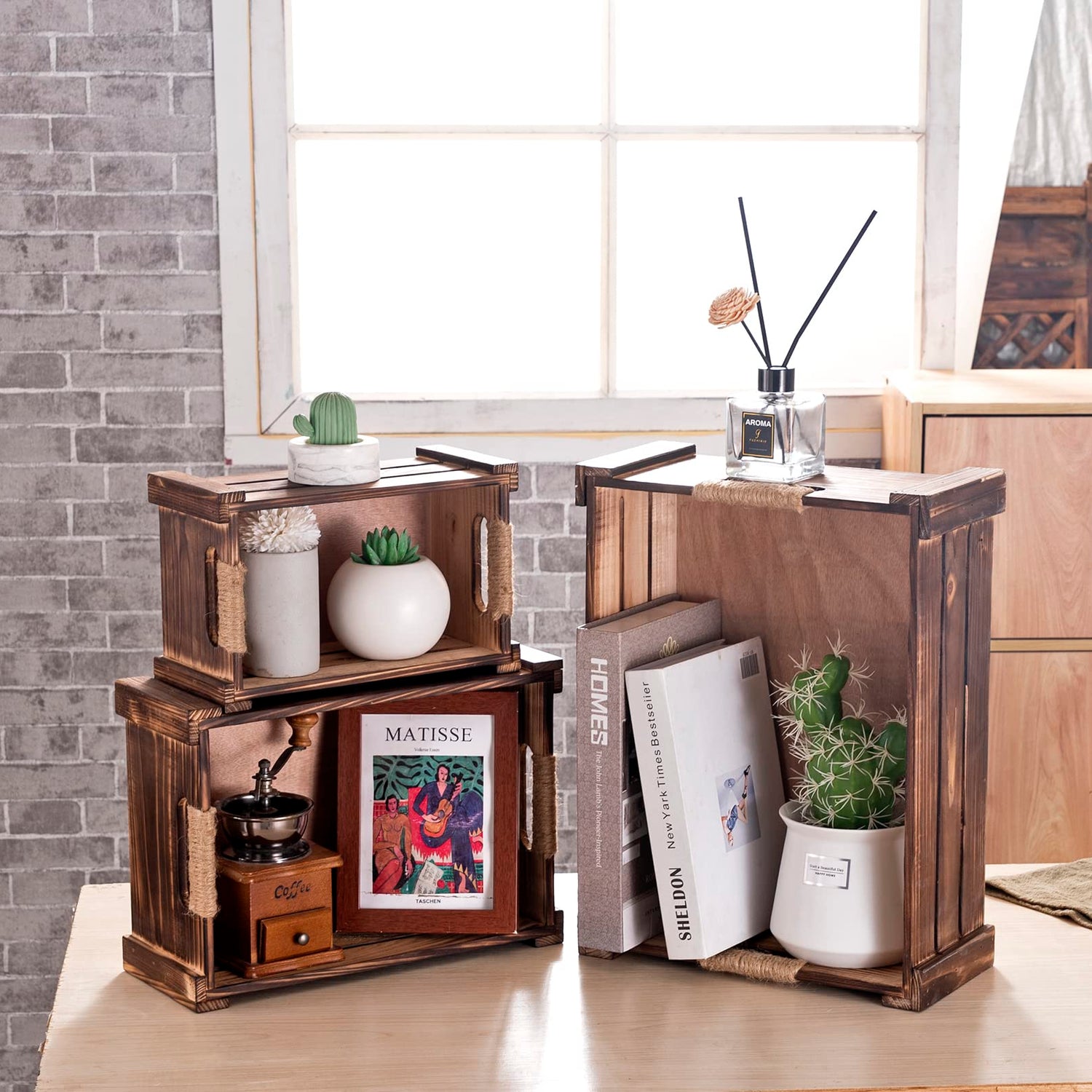 - RUSTIC FARMHOUSE DECOR–Add an unique modern farmhouse touch to your home with these rustic wooden decorative crates.
