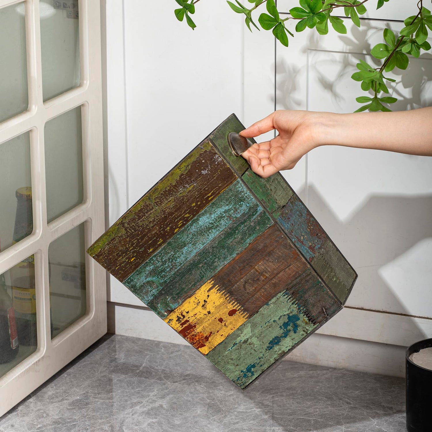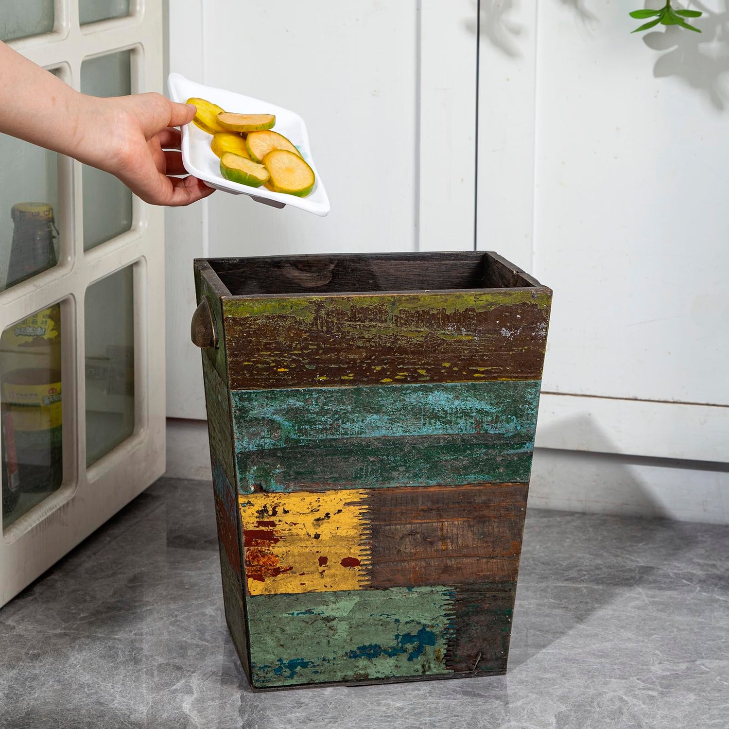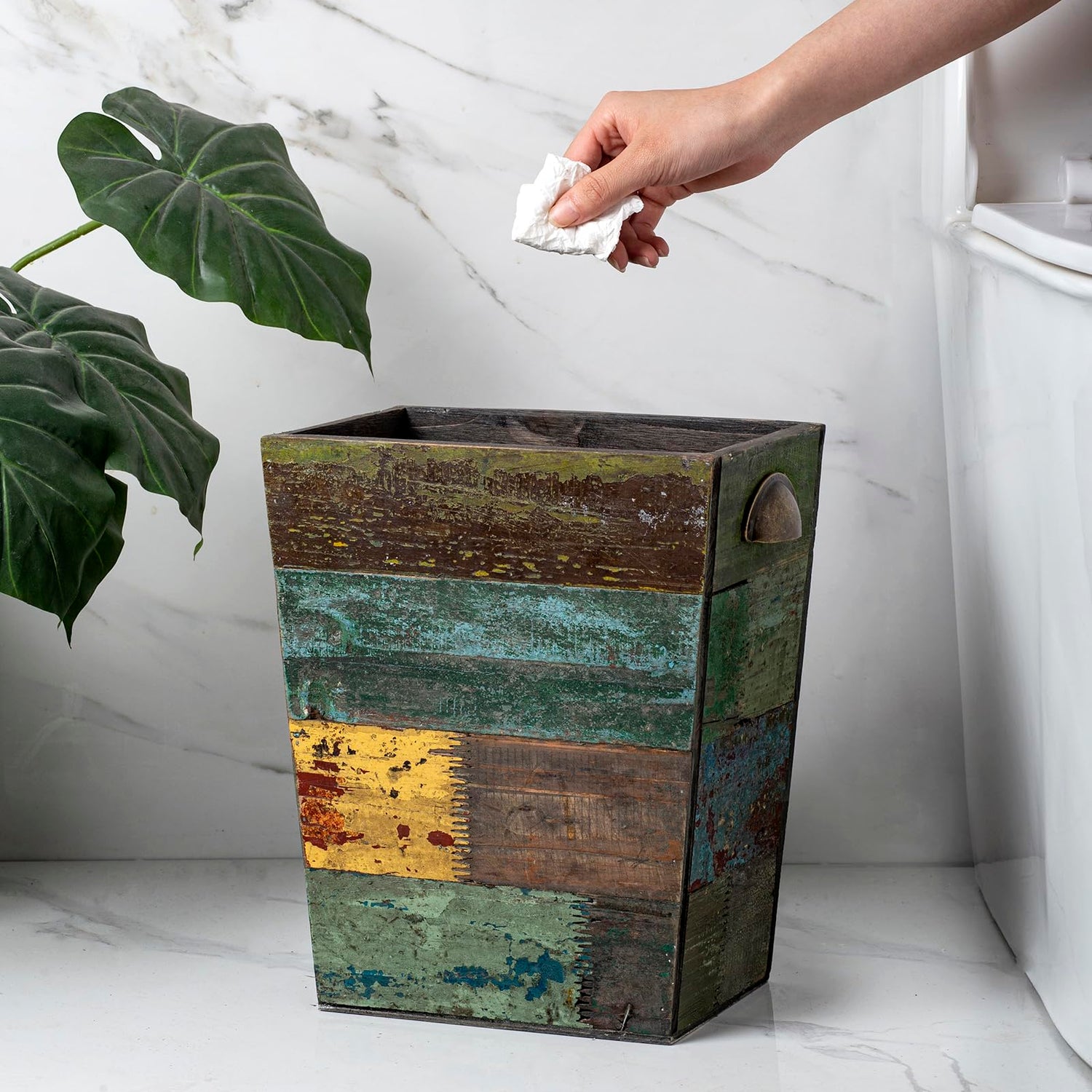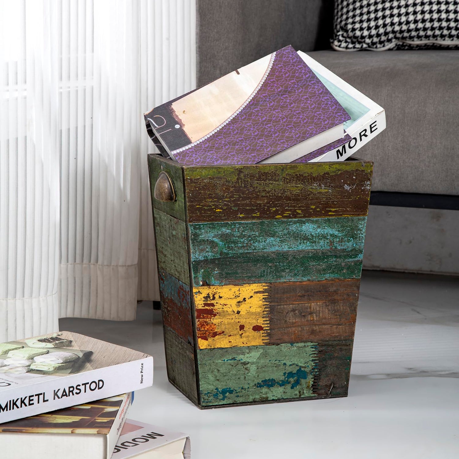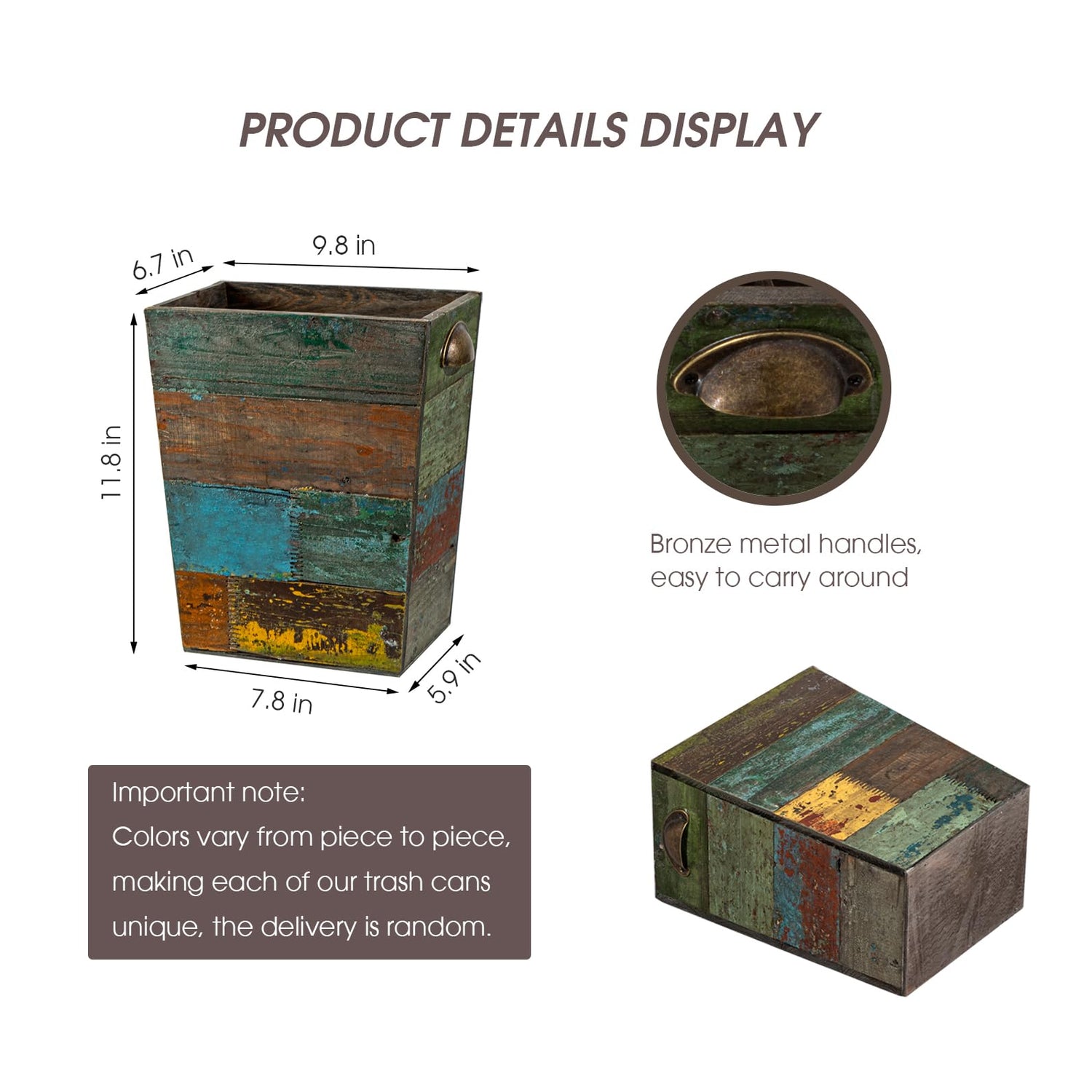 - CHARMING BOHO TOUCH –With a stunning distressed look and a variety of textures and colors, our wooden waste can creates a vintage boho charm, it is a unique and beautiful scenery wherever you place it, you will certain to get plenty of compliments.