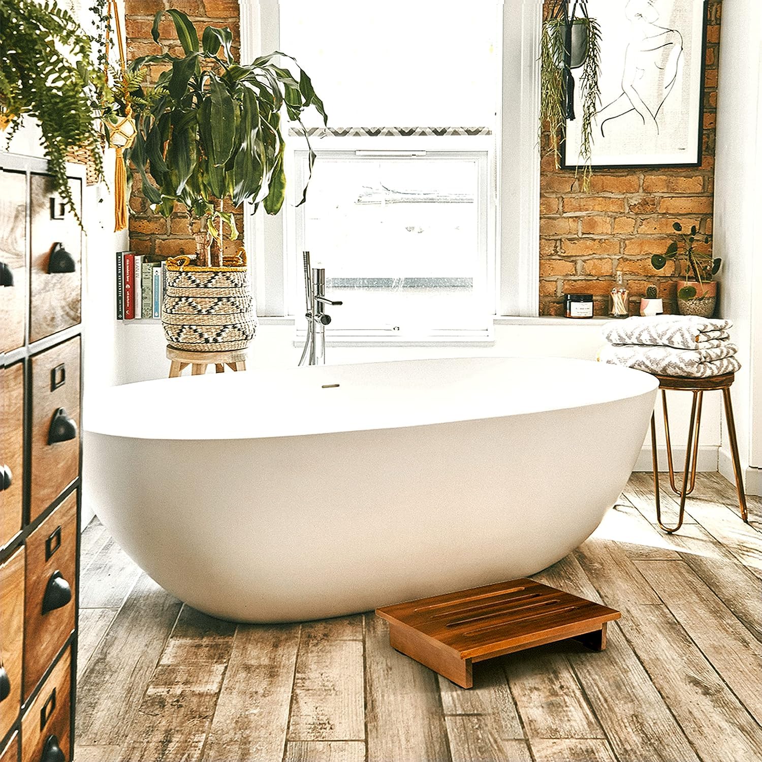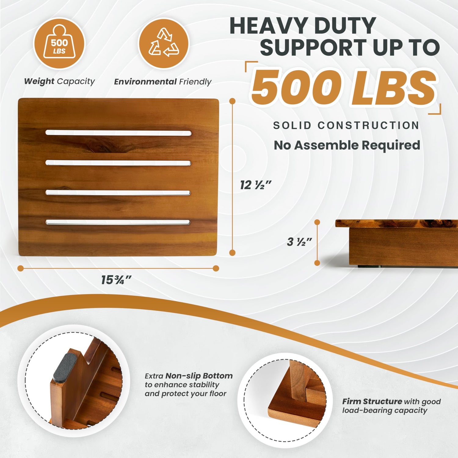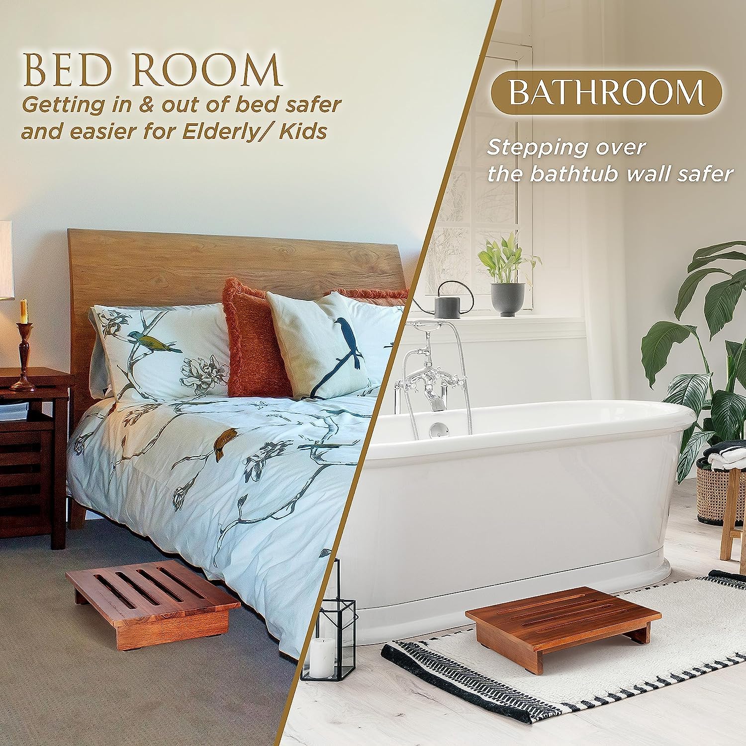 TINAMO 3.5" Acacia Wood One Step Stool for Adults (No Assemble Required)- 500 Lbs Wooden Step Stools Heavy Duty for High Bed Riser, Bathroom, Bedroom - Small Stepping Stool for Elderly, Seniors, Kids