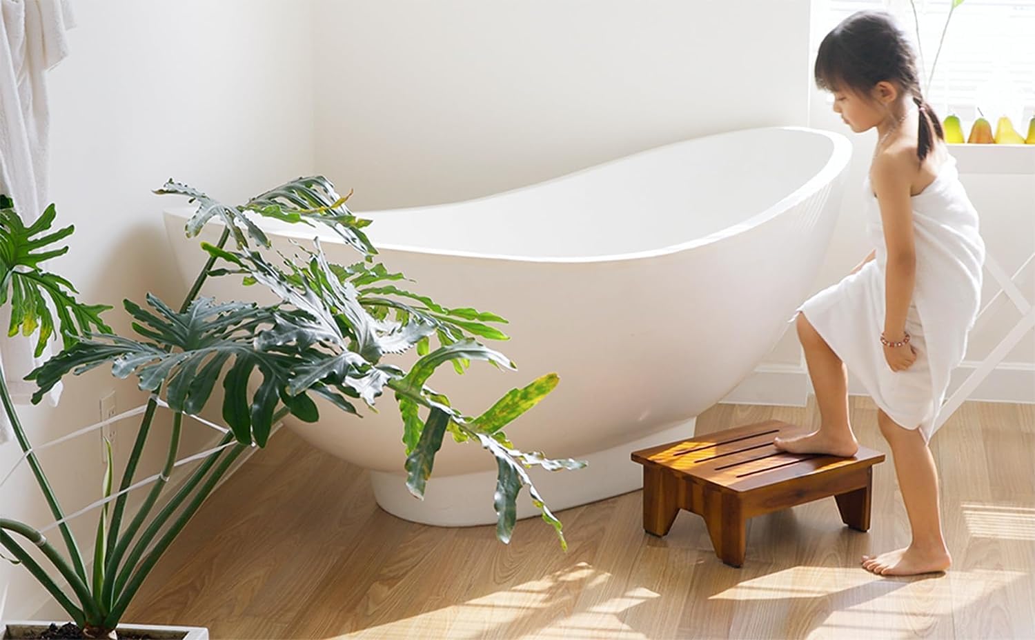 - Crafted from Durable Acacia Wood: Constructed from sturdy Acacia wood, this step stool enahances both strength and durability, while also adding a touch of natural beauty to your living space. The inclusion of a handle provides an added layer of support, making it an excellent choice.