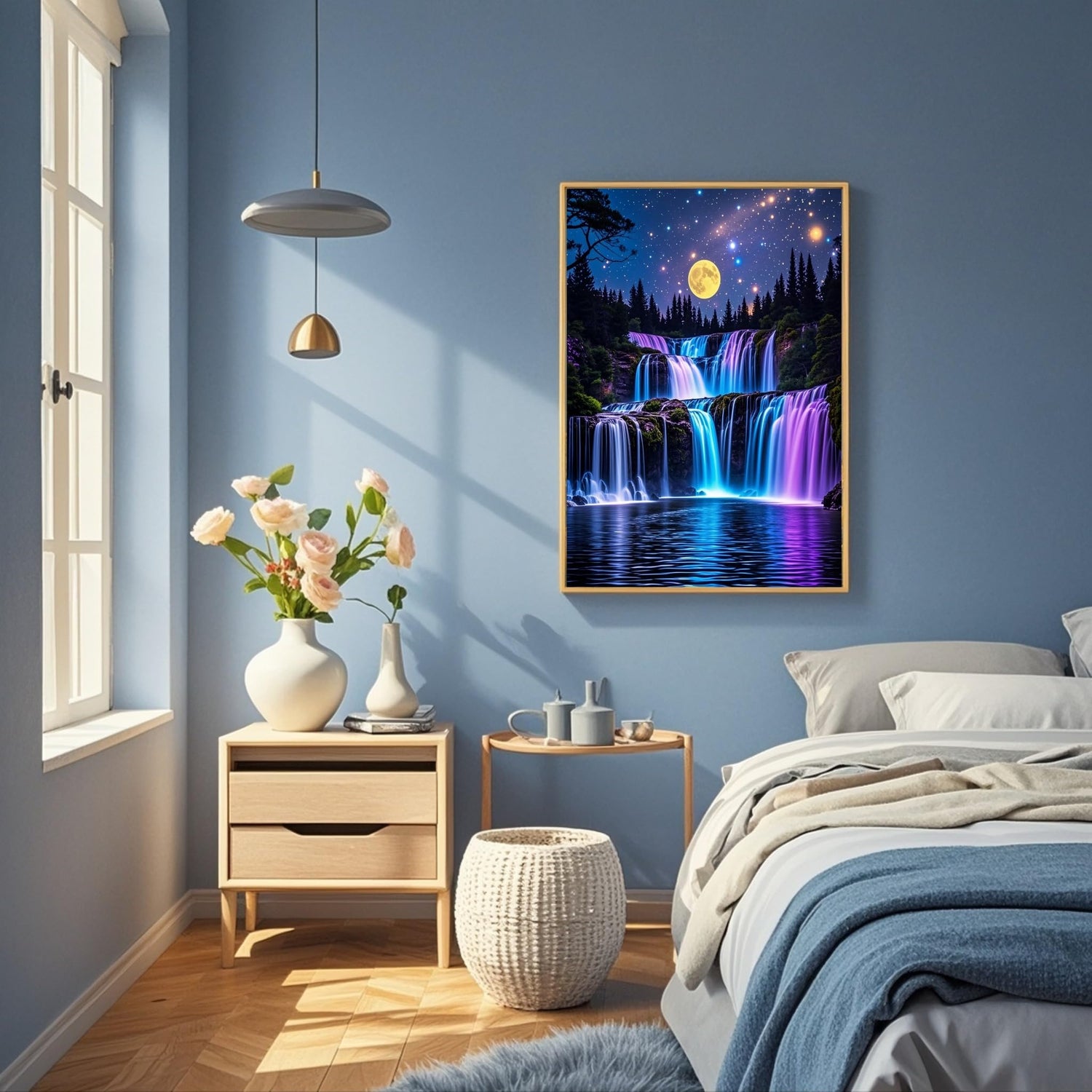 TINDAY Paint by Numbers Kit for Adults Beginner Paint by Number for Adult Painting by Number for Adults Waterfall Painting Kits for Adult Canvas Painting Home Decor Wall Art Moon 16x20 in