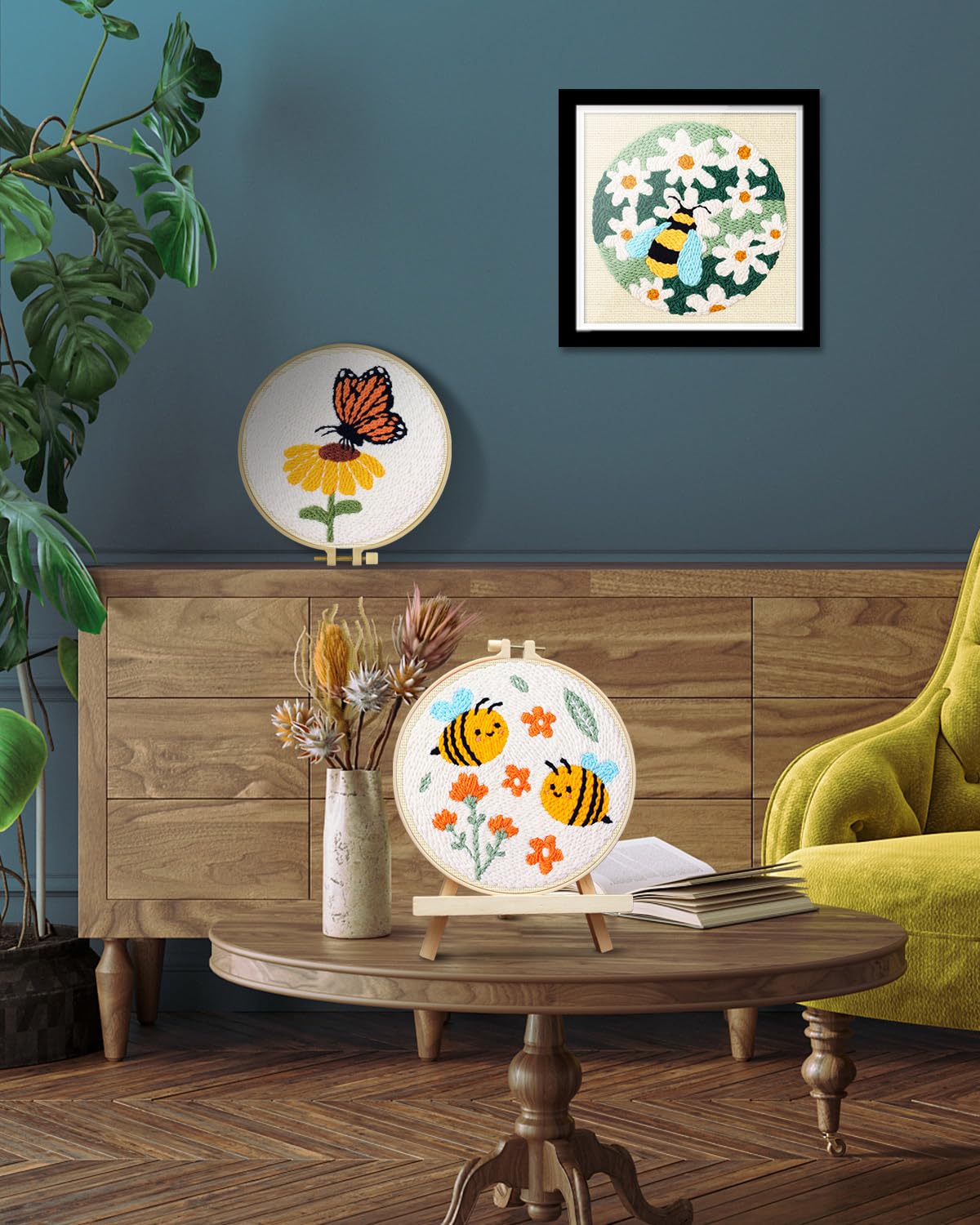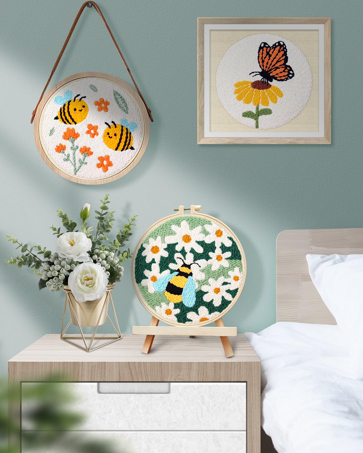 - 【What Will You Get】1* embroidery hoop(7.8 inch), 3* punch embroidery fabric with pattern, 1*punch needle, 3* instructions, 1*needle-threading tool, and enough yarns.