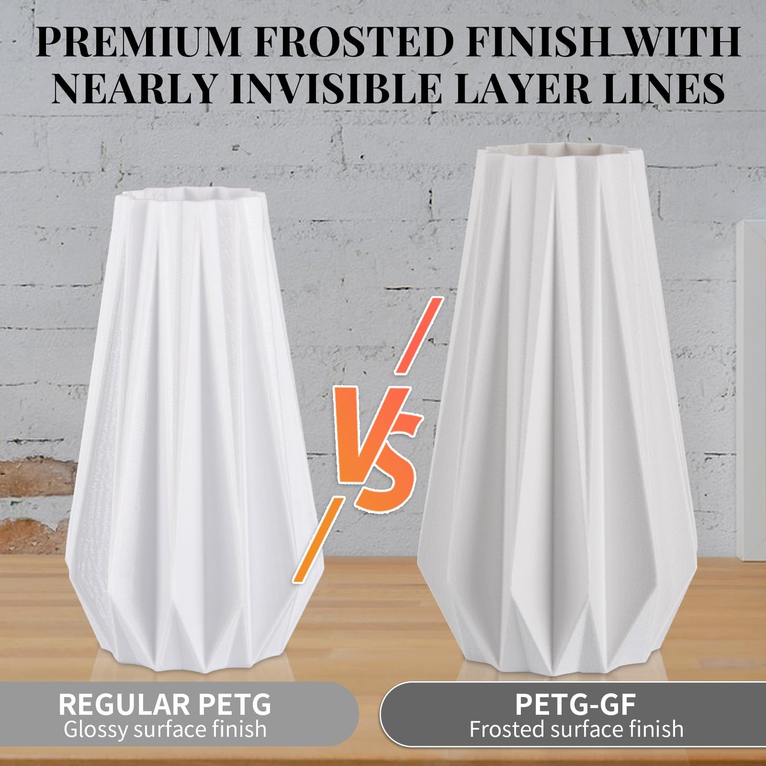 - Dimensional Stability & Premium Matte Frosted Surface: With a dimensional accuracy of 1.75 ±0.03mm, TINMORRY PETG-GF 3D printing filament has a glass fiber reinforcement that minimises warpage and shrinkage compared to regular PETG filament, providing unparalleled dimensional stability while giving the print a frosted surface texture.