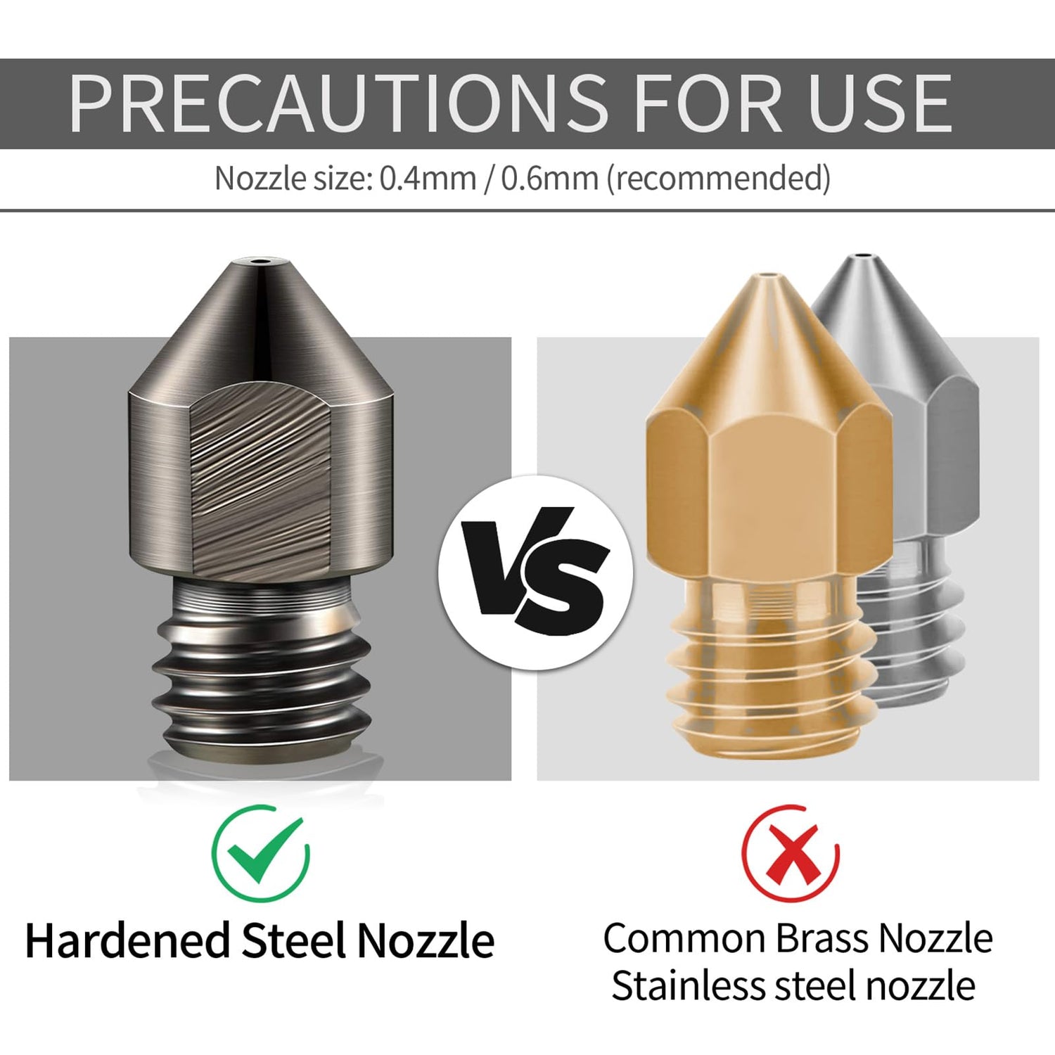 - Printing Tips: 1. Dry before use for the highest print quality (65 °C, 8 h). Printing and Keeping Container's Humidity < 20% RH (Sealed, with Desiccant). 2. Recommend Nozzle Temp 260℃, Temp tower test and flow calibration required when use. Bed Temp: 80℃ , Print Speed: <250 mm/s. 3. Please use wear-resistant steel nozzles ( 0.6 mm is recommended, 0.4mm Capable) instead of ordinary brass nozzles! 4. Perfectly compatible with Bambu Lab FDM 3D Printers.