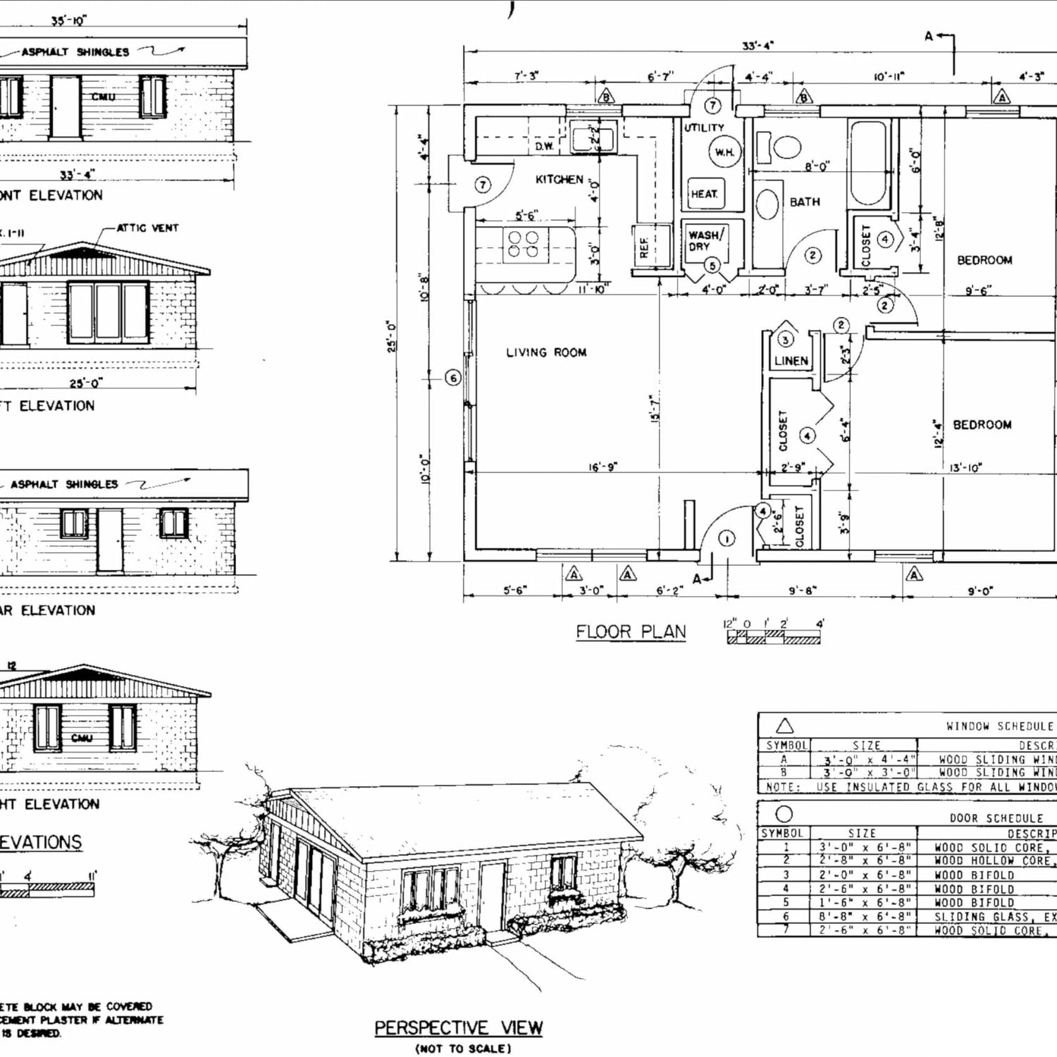- Comprehensive Design: Includes floor plan, elevations, window and door schedule, building section, wall section, compiled onto two sheets
