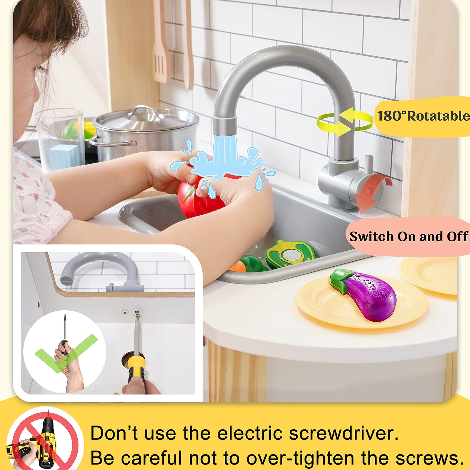 - ⭐Adjustable Height Suits Age 3-7: A ideal learning toy should grow with kids. Our play kitchen can easily be set to a 3 height stage to suit kids age 3-7. You can teach your kids about food, common skills, and cooking by giving them different accessories or letting them explore the kitchen while playing.