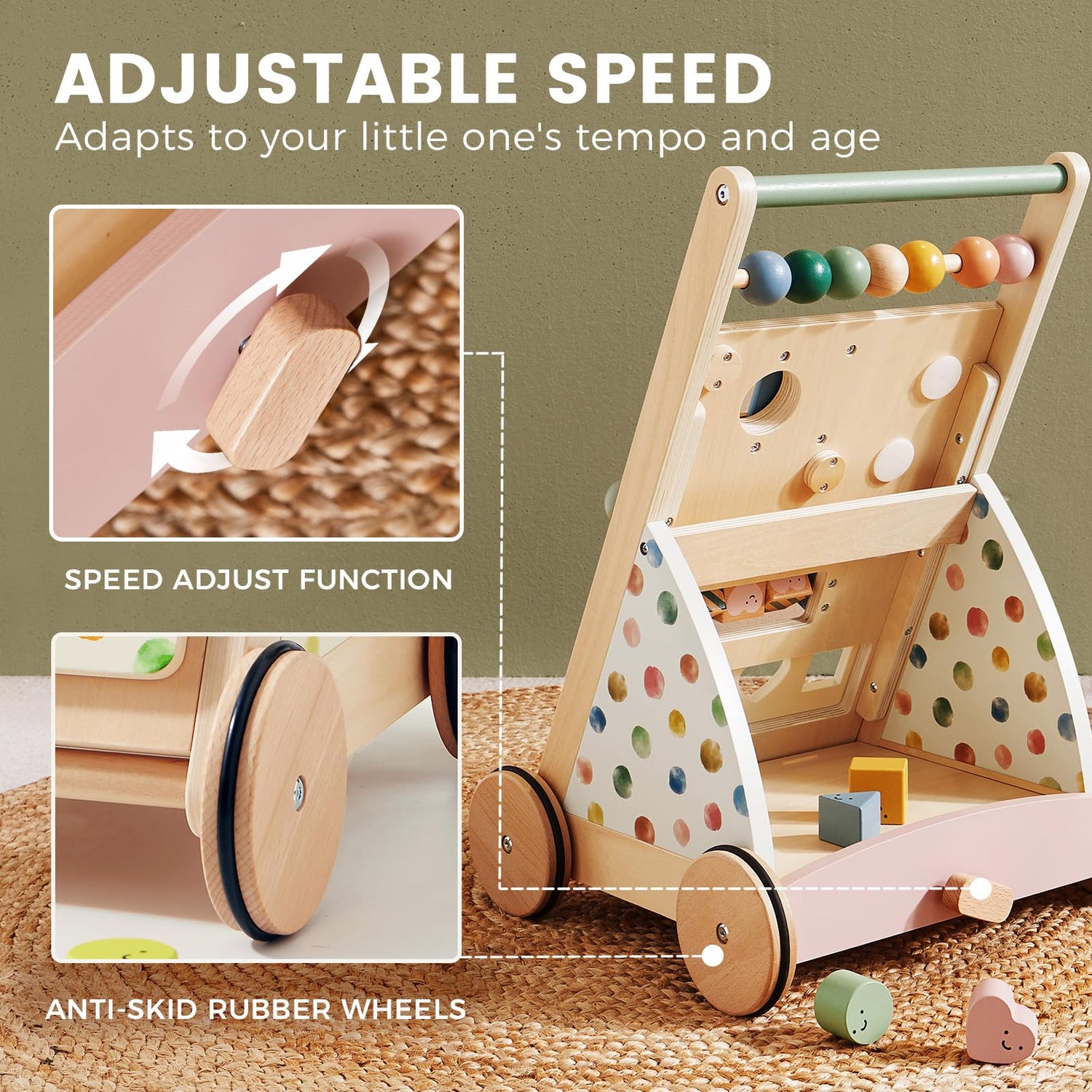 Tiny Land Wooden Baby Walker, Baby Push Walker, Montessori Walker Toy, Adjustable Speed Baby Walker for Boys and Girls, Baby Activity Center, Push Toys for Kids Development