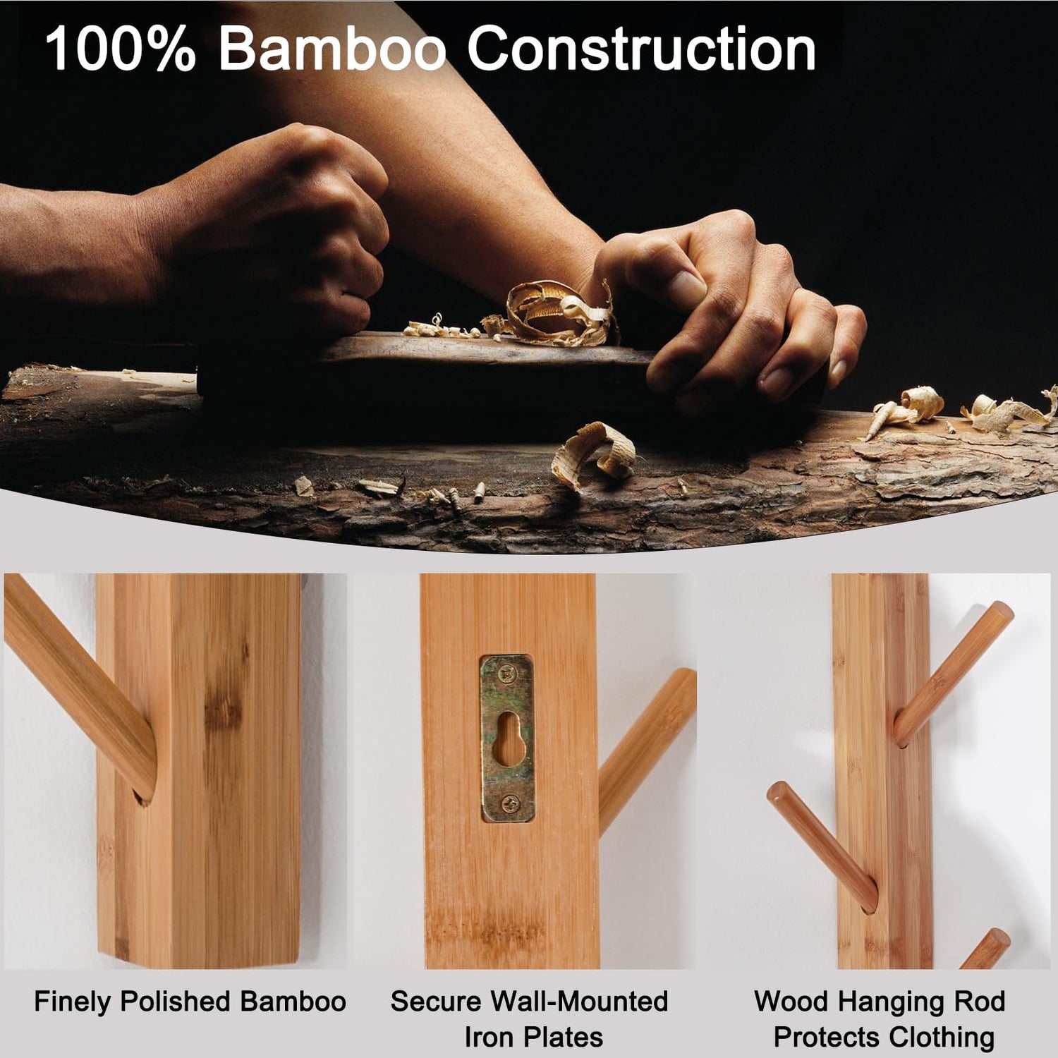 Details: 【Natural Bamboo】: The wall-mounted coat rack is crafted from natural bamboo, offering high strength and a lightweight aesthetic design. This coat rack isn't just a home decor piece but also an eco-friendly choice! The bamboo material is naturally moisture-resistant, preventing damage due to dampness and ensuring dry, well-ventilated clothing even in humid environments. Its rapid growth and renewability signify not only quality but also environmental responsibility, making bamboo's advantages a part of your home while enjoying a perfect blend of nature and eco-friendliness.