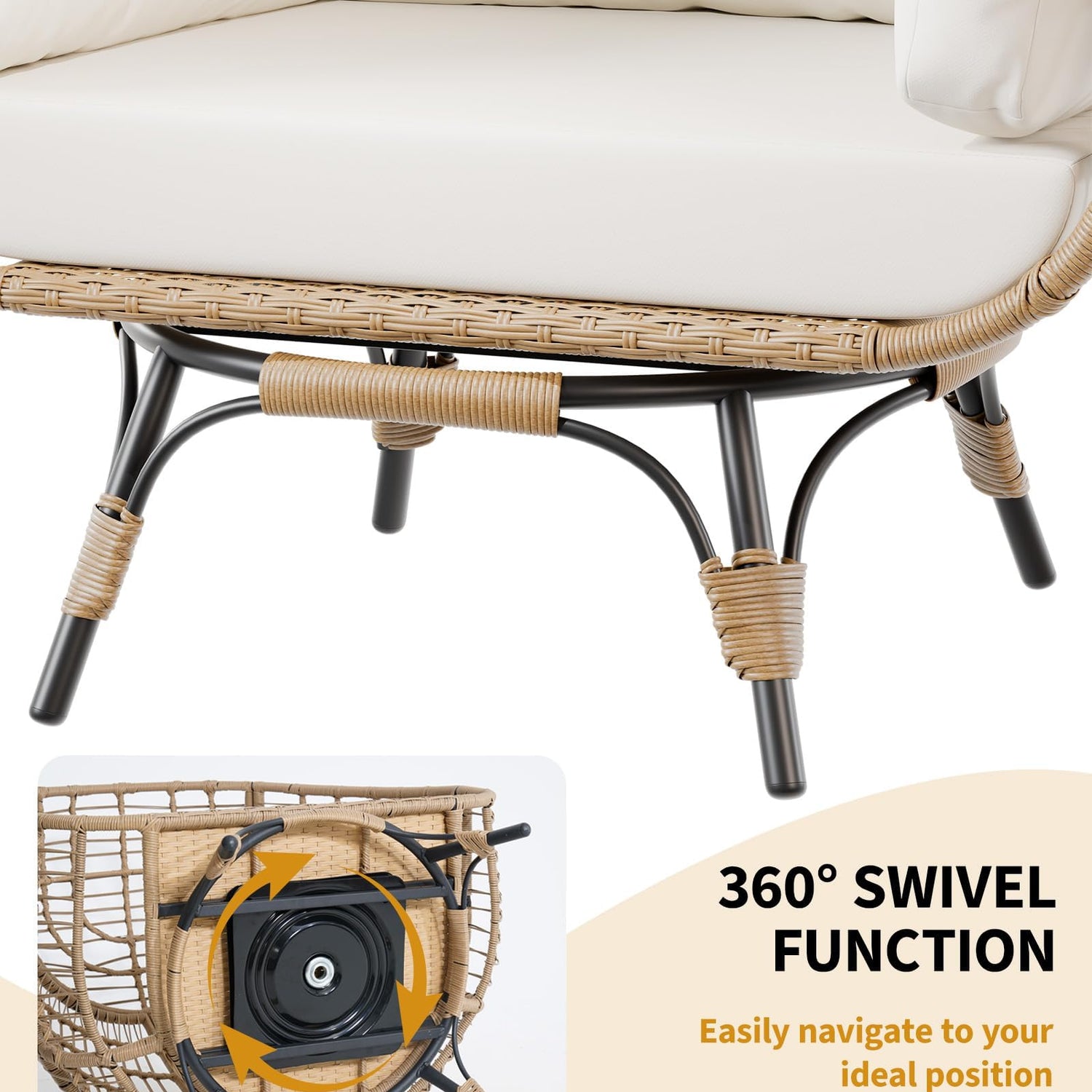 Tioutbot 360° Swivel Egg Chair, Oversized Patio Rotating Basket Chair, Steel Frame and Metal Base, Waterproof, PE Rattan Lounge Chair for Indoor & Outdoor, Porch, Living Room, Backyard, Beige