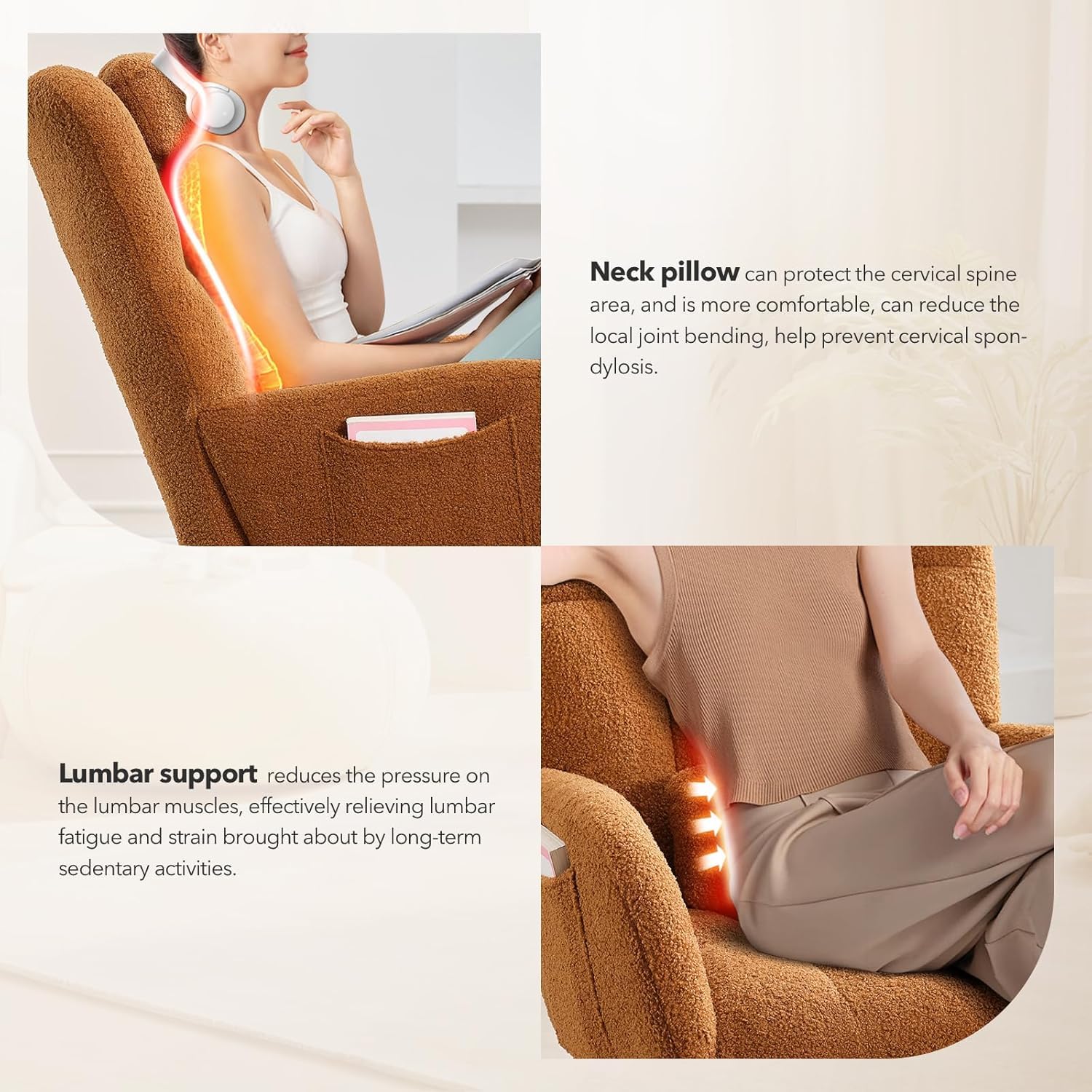 Tioutbot Rocking Chair Nursery Teddy with Pillow&High Backrest Armchair,Fabric Upholstered Accent Chair Nursing Chairs for Living Room, Bedroom,Brown