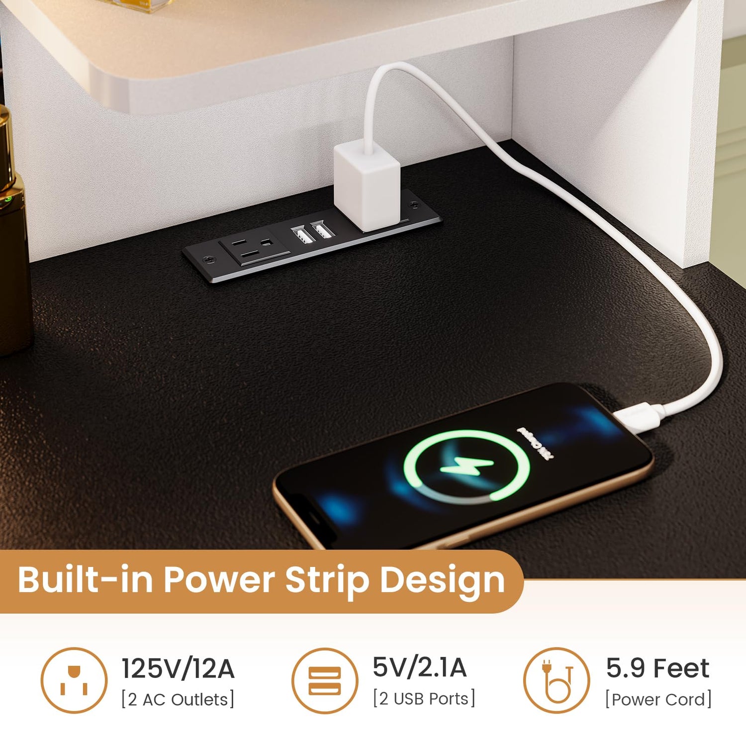 - 【Convenient Charging Station】This makeup table comes with a built-in power strip on the right table top, including 2 standard plug sockets and 2 USB ports, so you don't have to look around for a power outlet when styling your hair or getting your nails done. It also provides great convenience for charging mobile phone, tablet, headphones or other mobile devices.