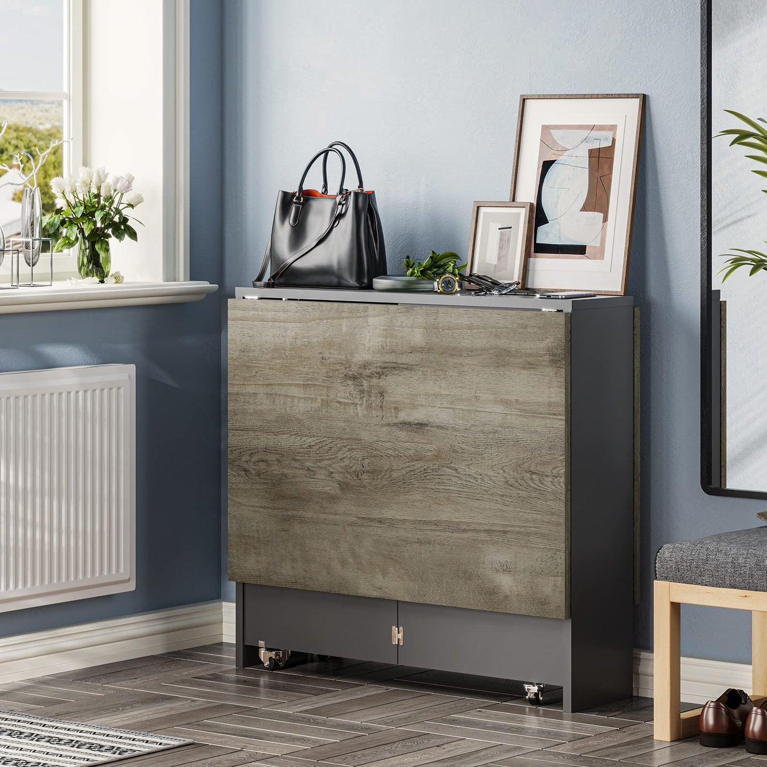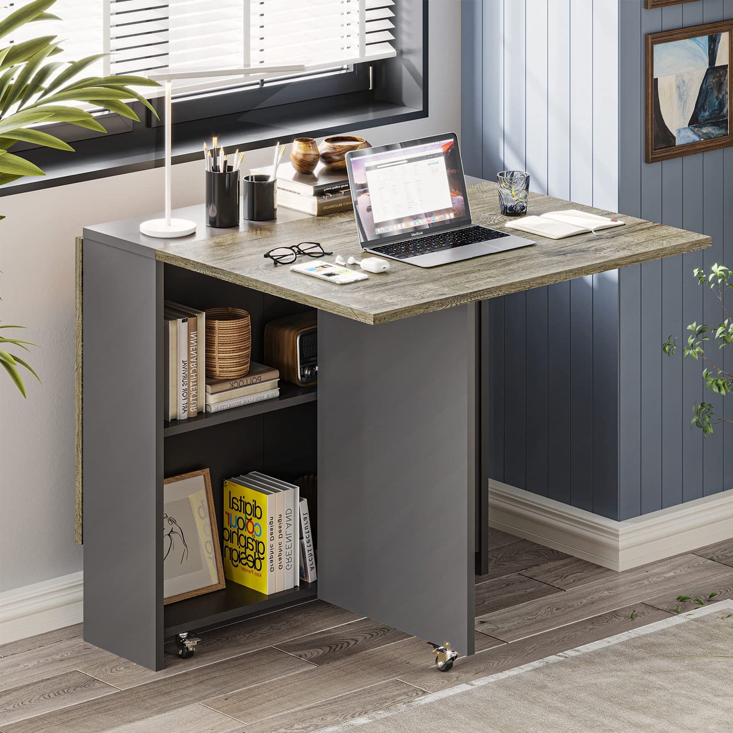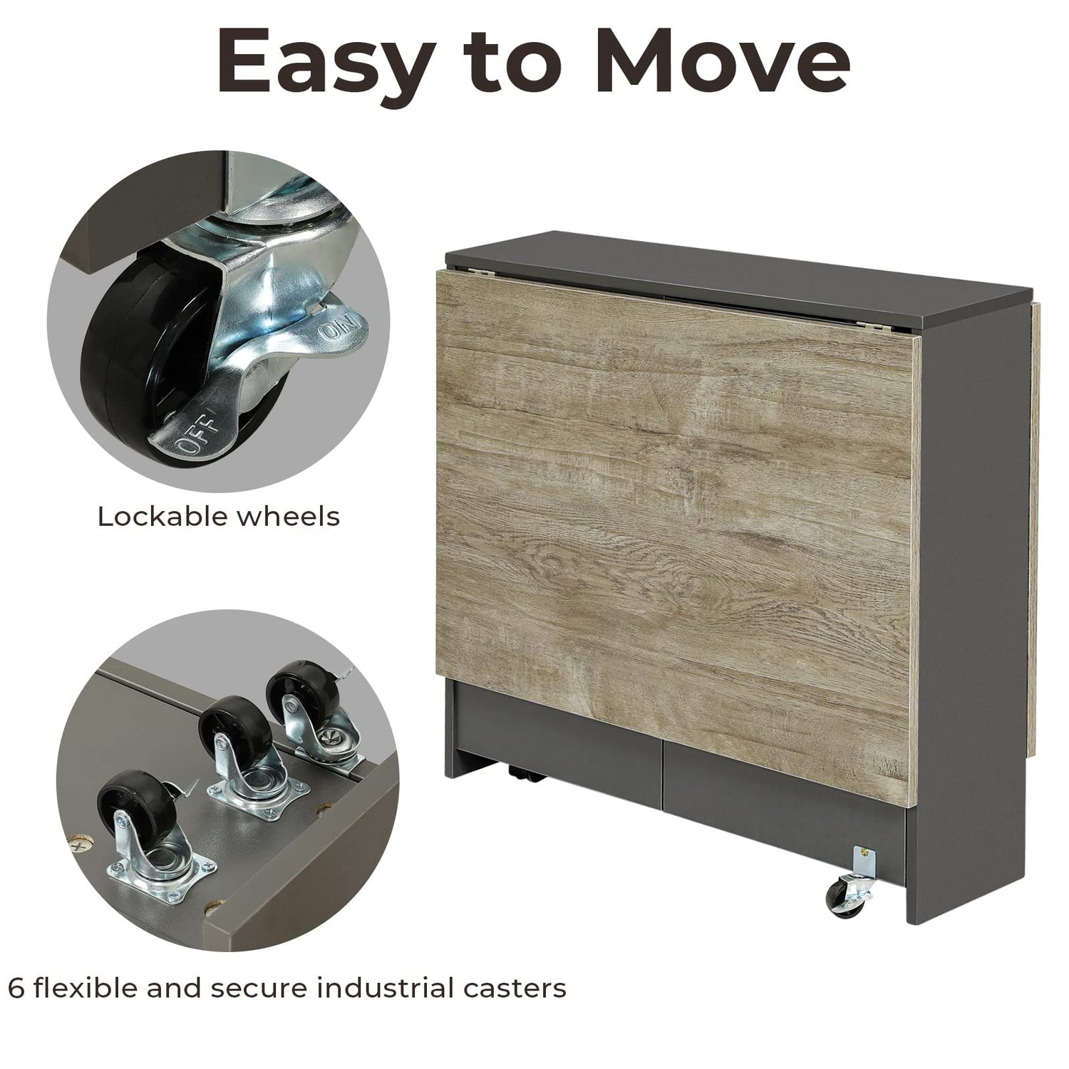 Tiptiper Folding Dining Table with 2 Storage Racks, Drop Leaf, 6 Wheels, Multifunction Expandable Table for Kitchen, Bedroom, Living Room