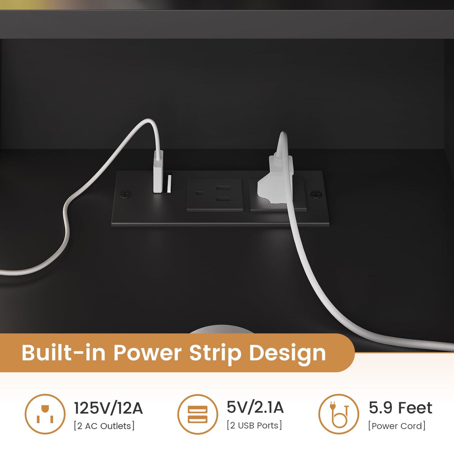 - 【Convenient Charging Station】This makeup table comes with a built-in power strip on the right table top, including 2 standard plug sockets and 2 USB ports, so you don't have to look around for a power outlet when styling your hair or getting your nails done. It also provides great convenience for charging mobile phone, tablet, headphones or other mobile devices.