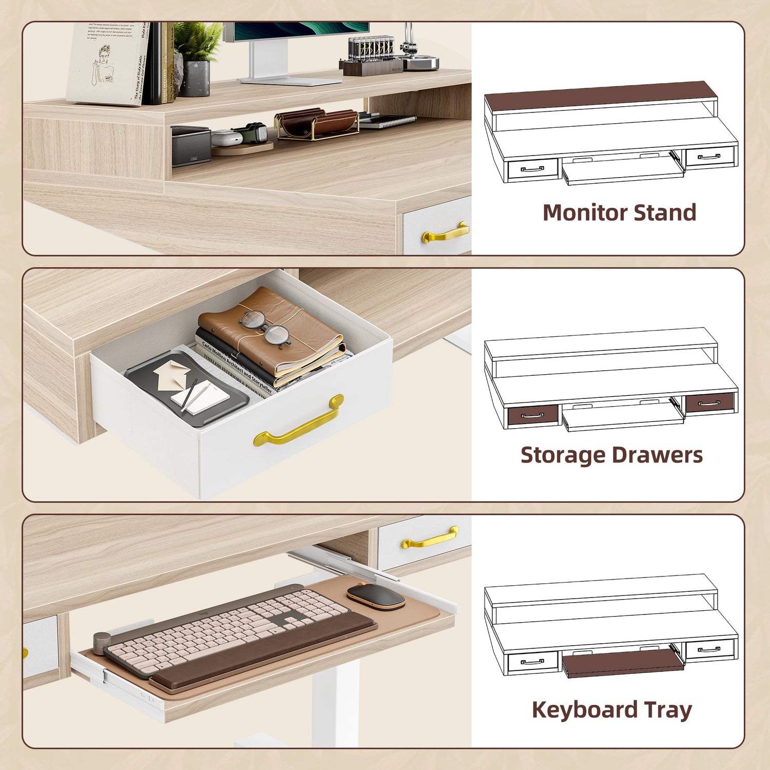 • Keyboard Tray & Drawer Storage: Equipped with a sliding keyboard tray and two drawers to enhance workspace organization and improve daily work efficiency.