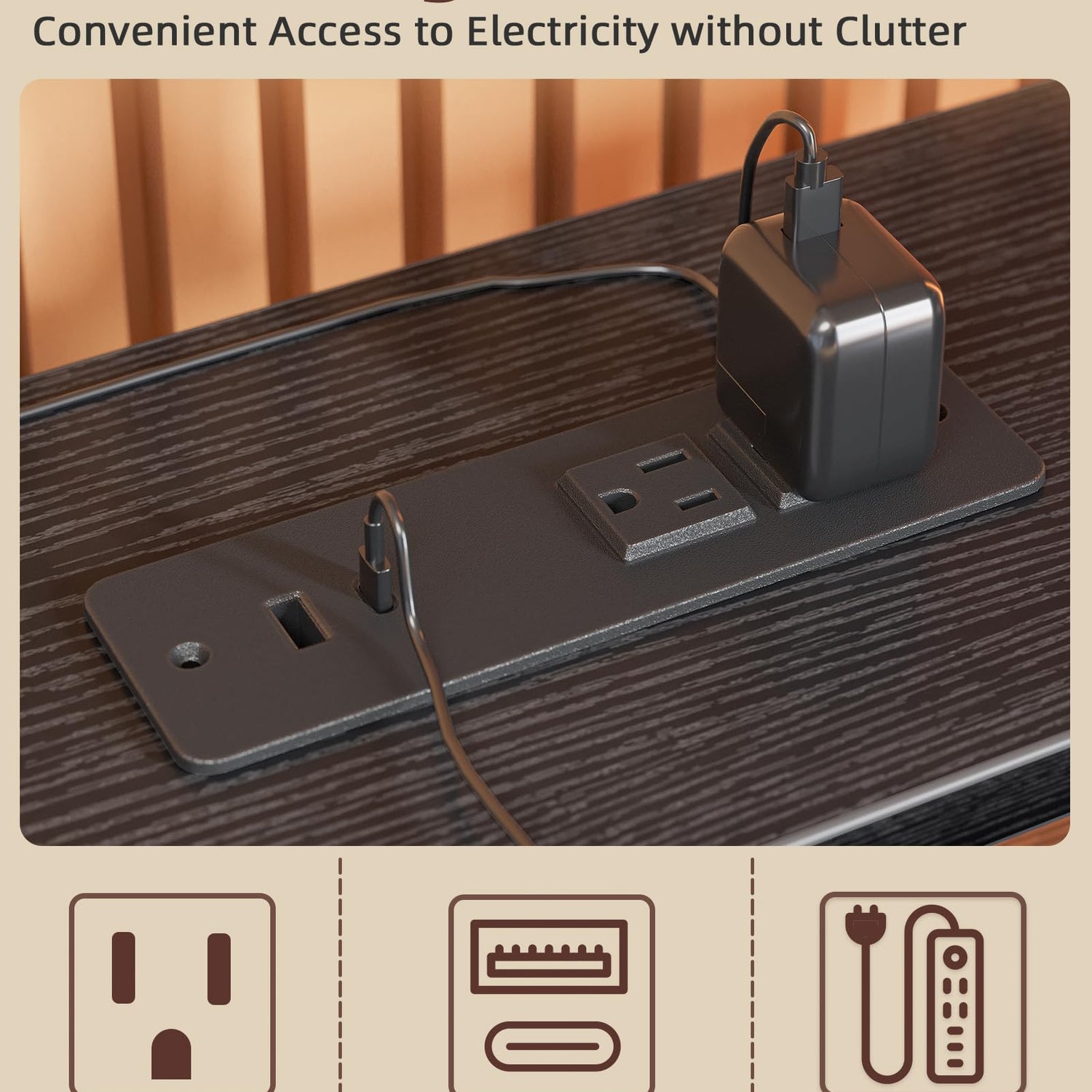 - Computer Desk with Power Outlets - Equipped with 2 AC outlets, 1 USB port, and 1 Type-C portal, this computer desk with shelves can easily charge your phones, gaming gear and other office devices, avoiding cluttered wires.