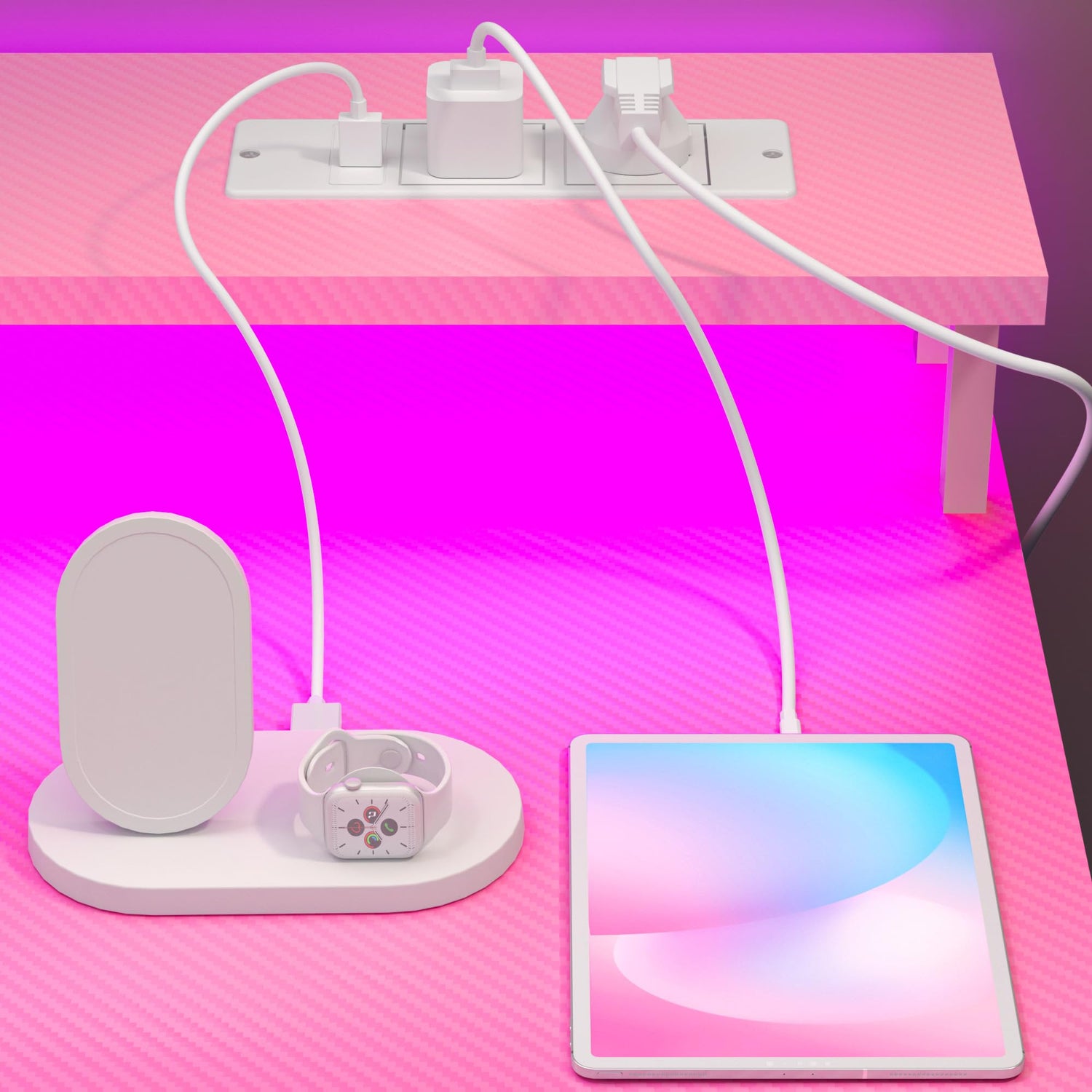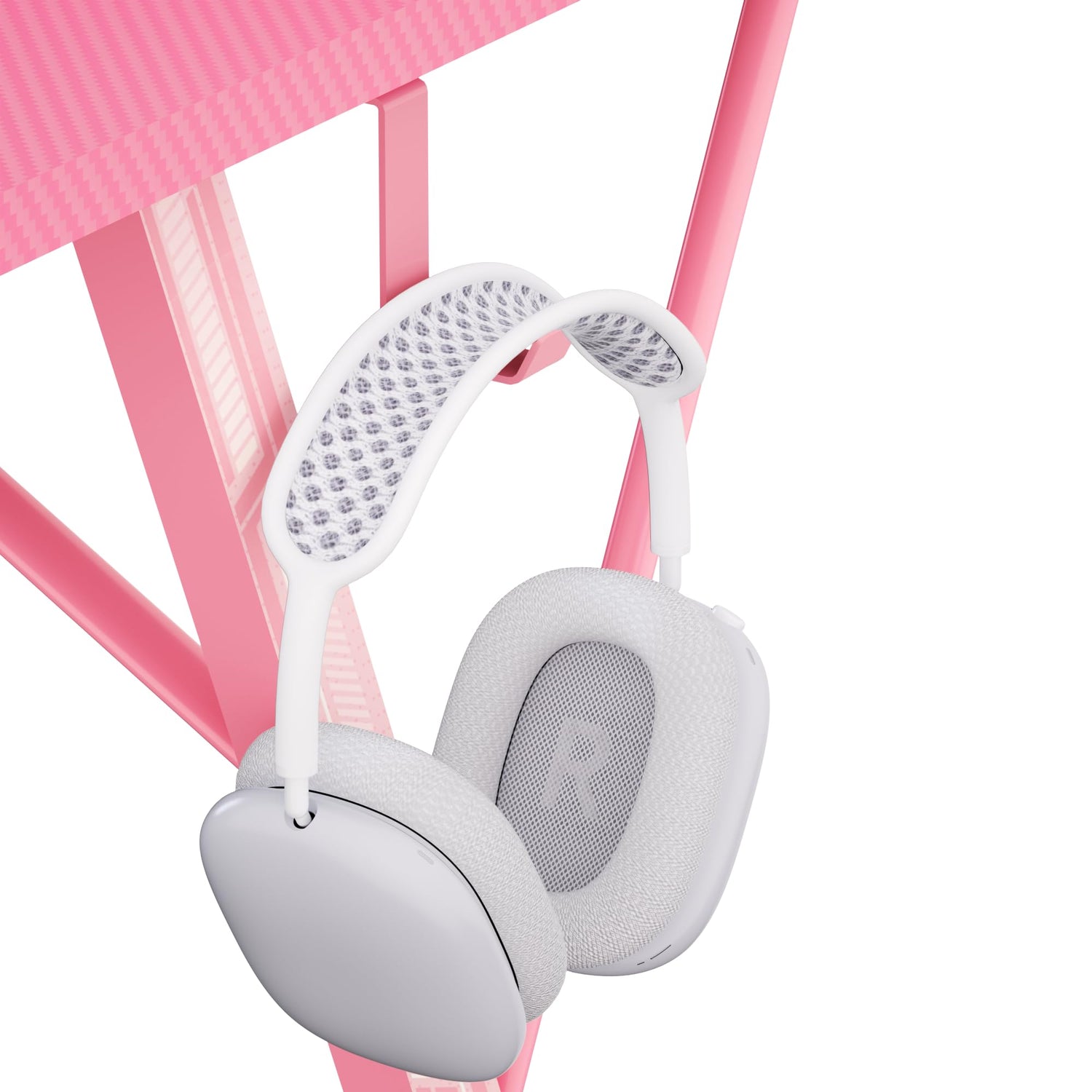 TIQLAB Gaming Desk with Power Outlets & LED 40 Inch Ergonomic Computer Carbon Fiber Surface Gamer Desk, Large Monitor Stand, Headphone Hook, PC Workstation for Bedroom, Pink Desk